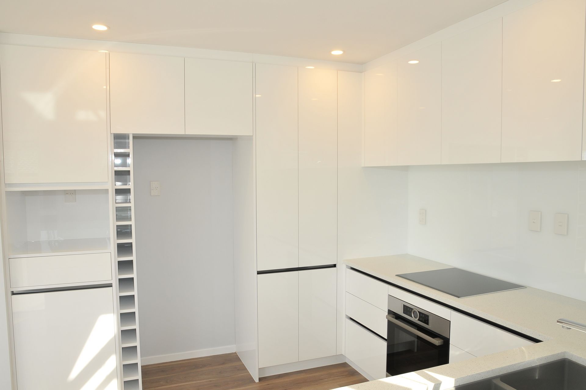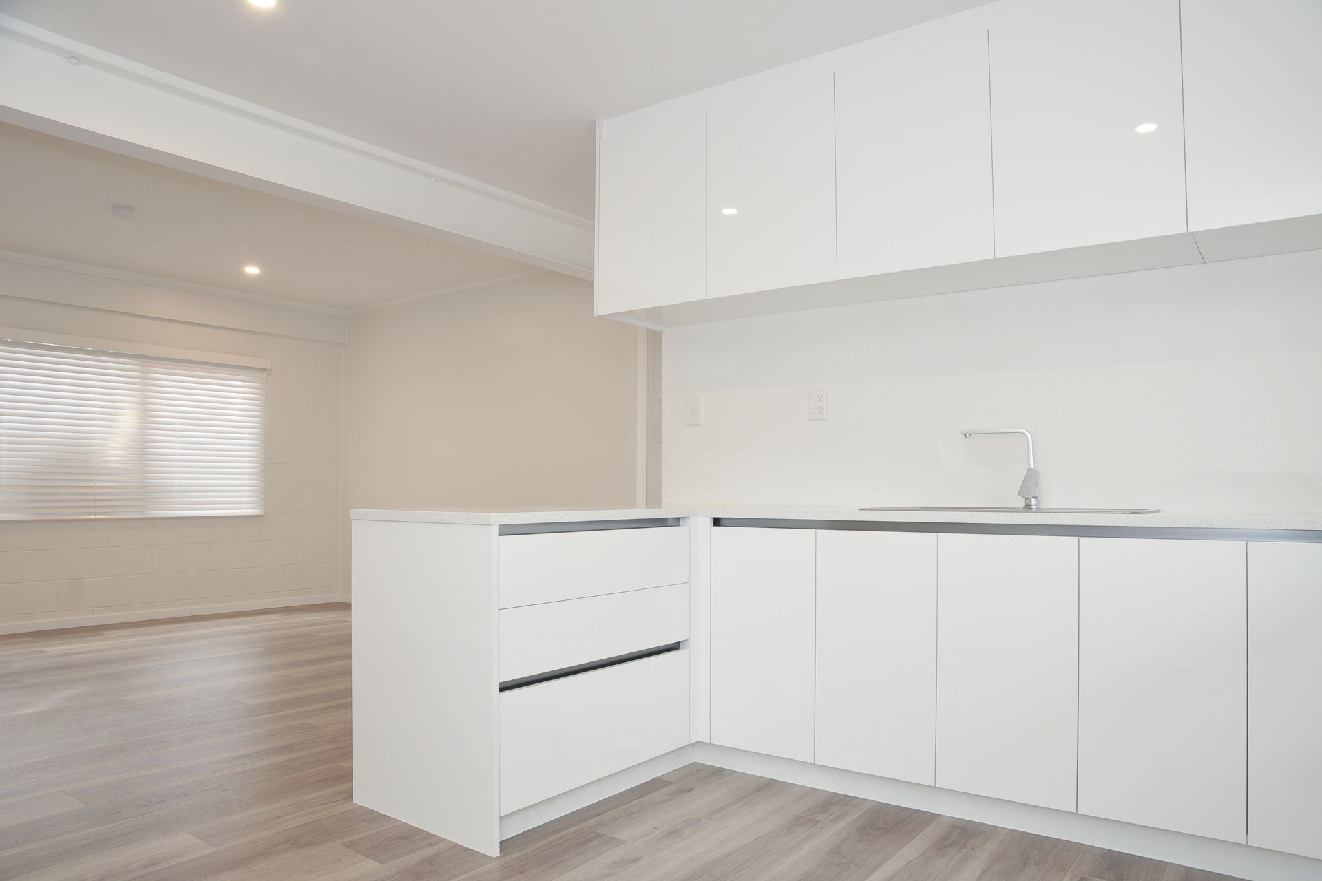 ArchiPro Project Summary - Comprehensive kitchen redesign and project management for Rangitoto Terrace, featuring custom countertops, new flooring, installed cabinets, and complete painting of kitchen materials.