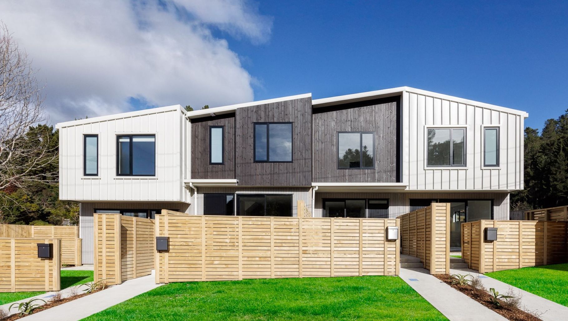 ArchiPro Project Summary - A sophisticated 15-townhouse development in Stokes Valley, featuring 2 and 3-bedroom units designed for modern living with ground floor living areas and upper-level bedrooms, set amidst lush natural surroundings.
