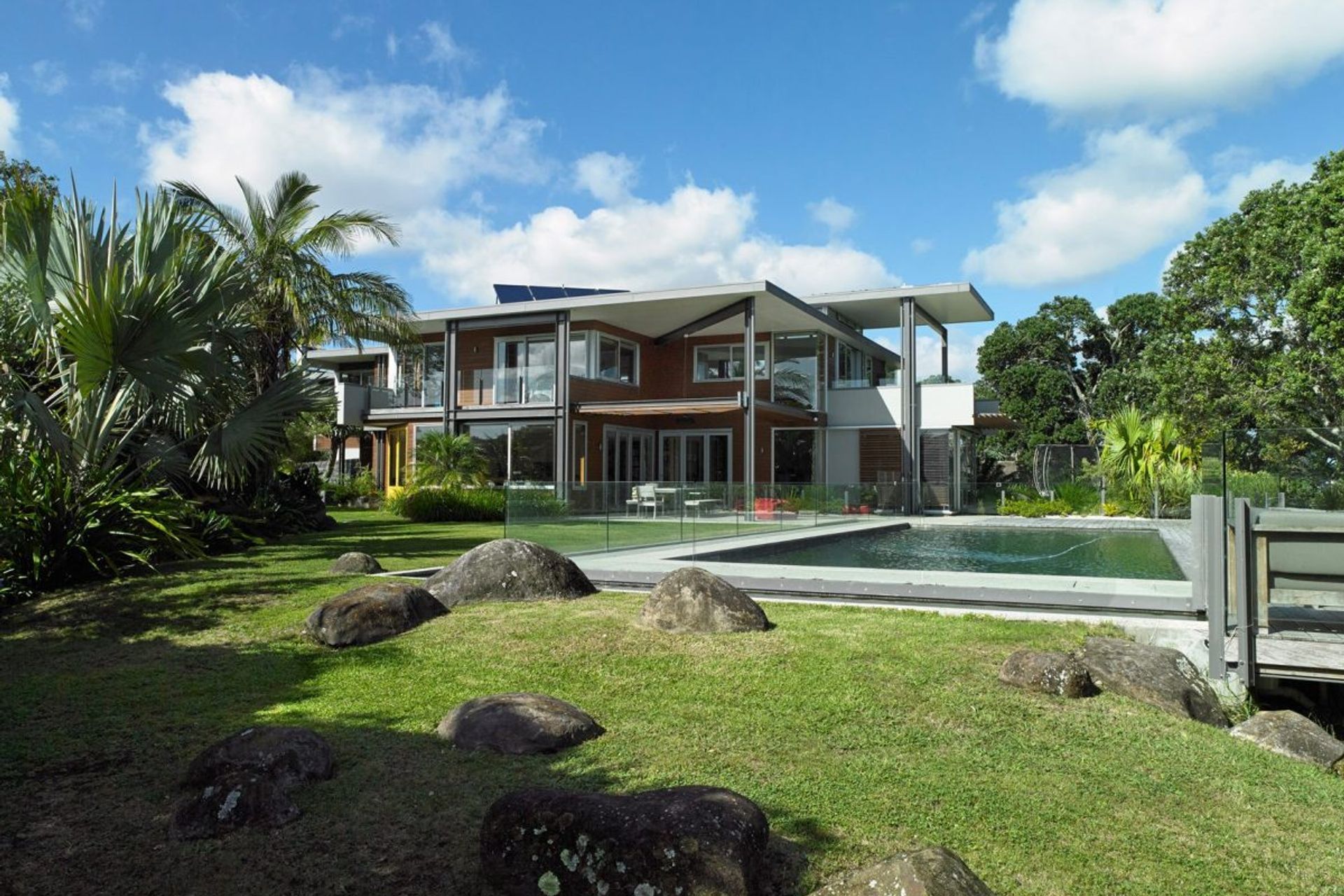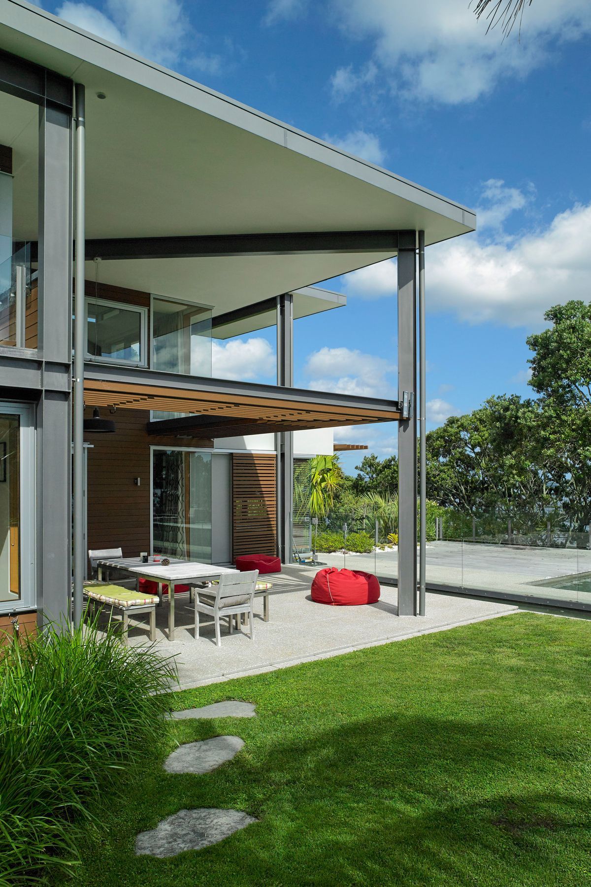 ArchiPro Project Summary - Two vibrant homes on an urban headland in Auckland, designed for multi-generational living with open spaces, artistic studios, and sustainable features, fostering family connections and privacy.
