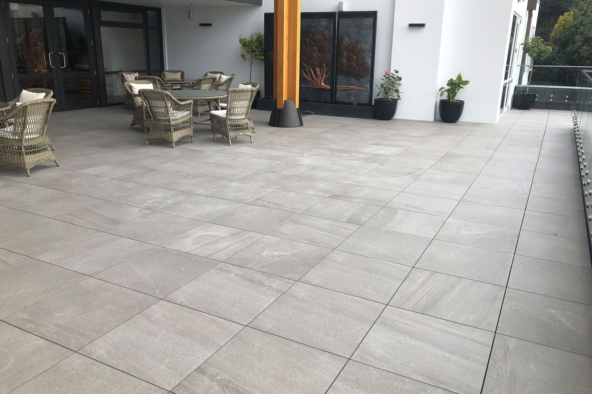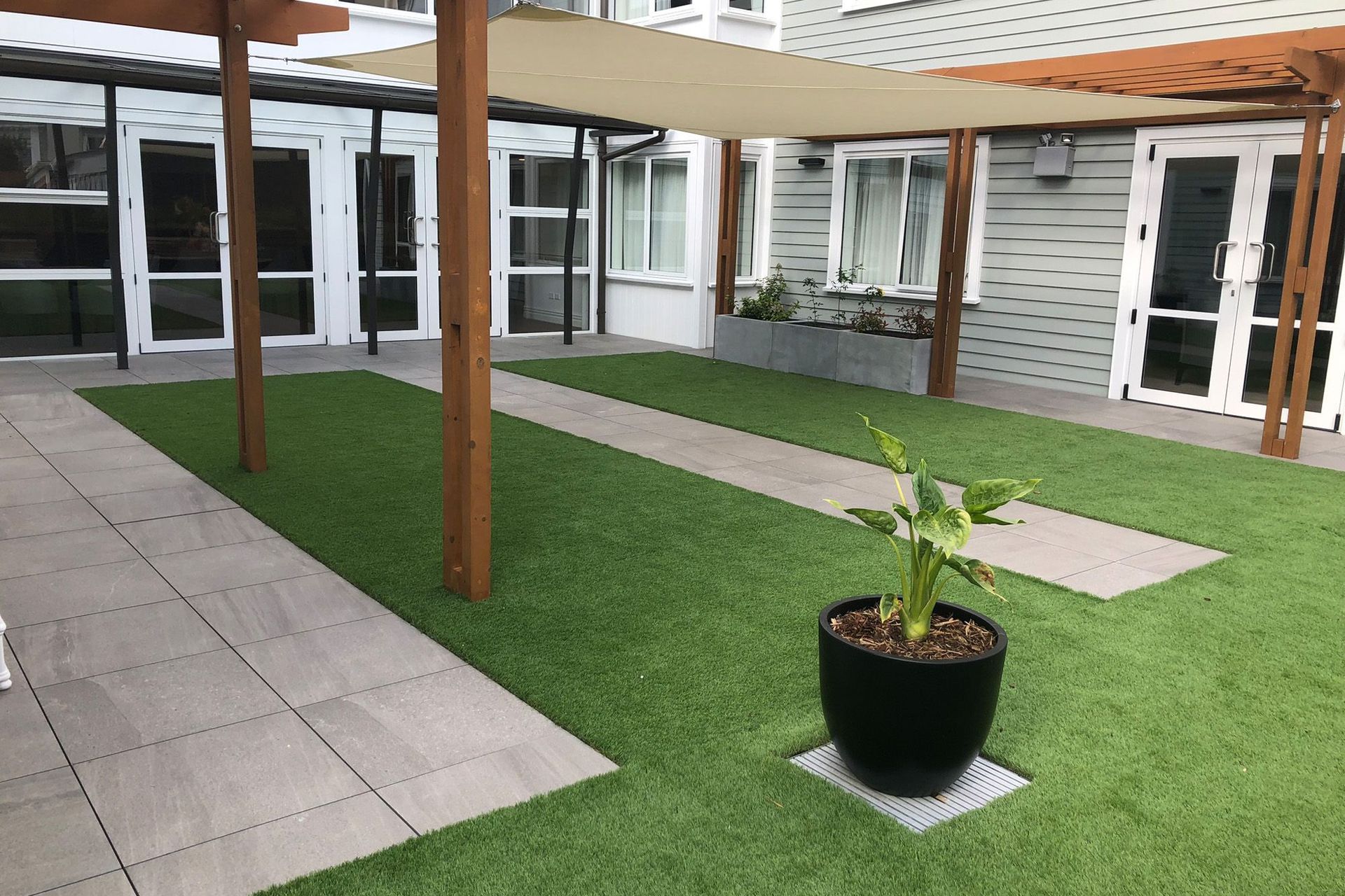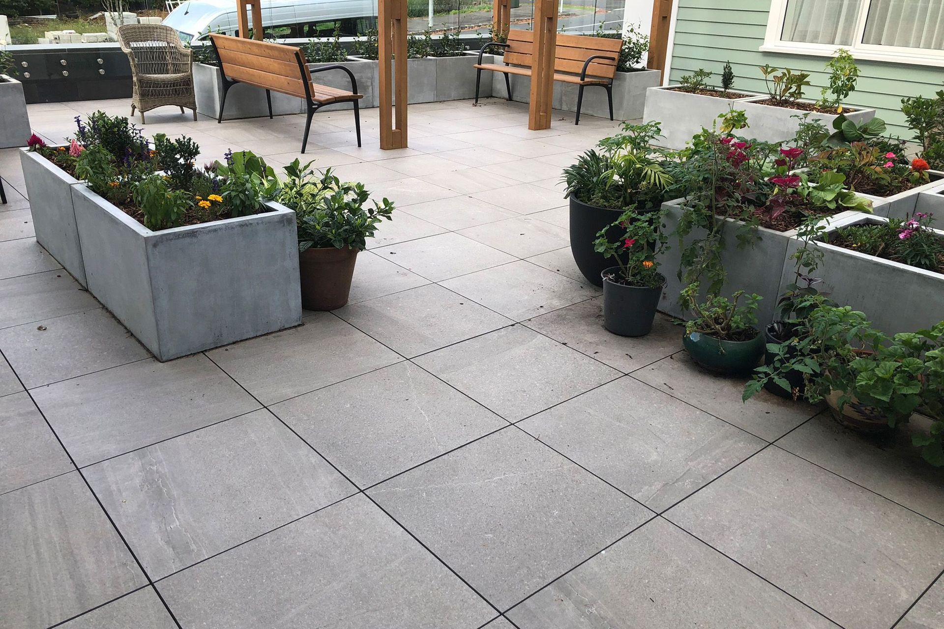 ArchiPro Project Summary - Innovative floating tile decks enhance high-use areas of Rawhiti Estate, providing a safe, non-slip environment with a durable aluminium frame and integrated planting for a personalized touch.