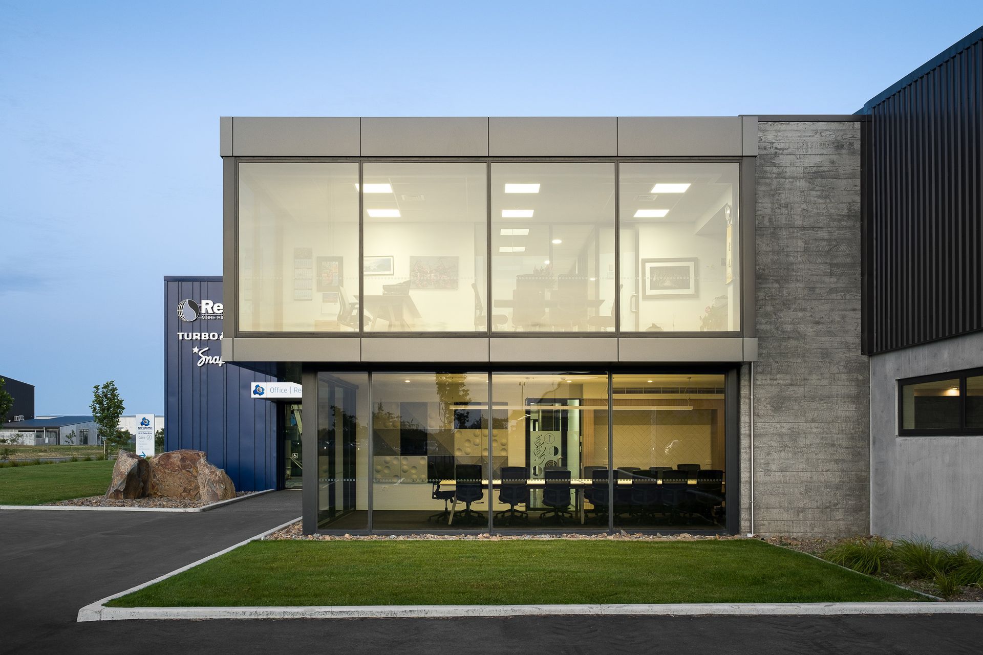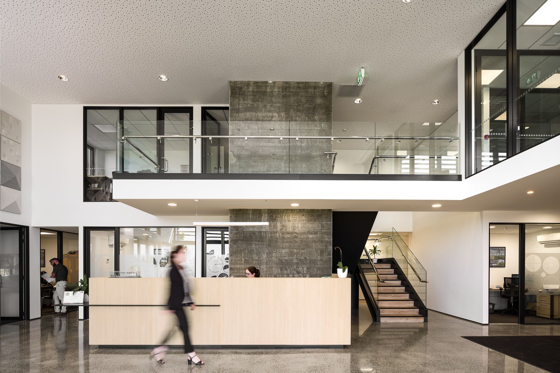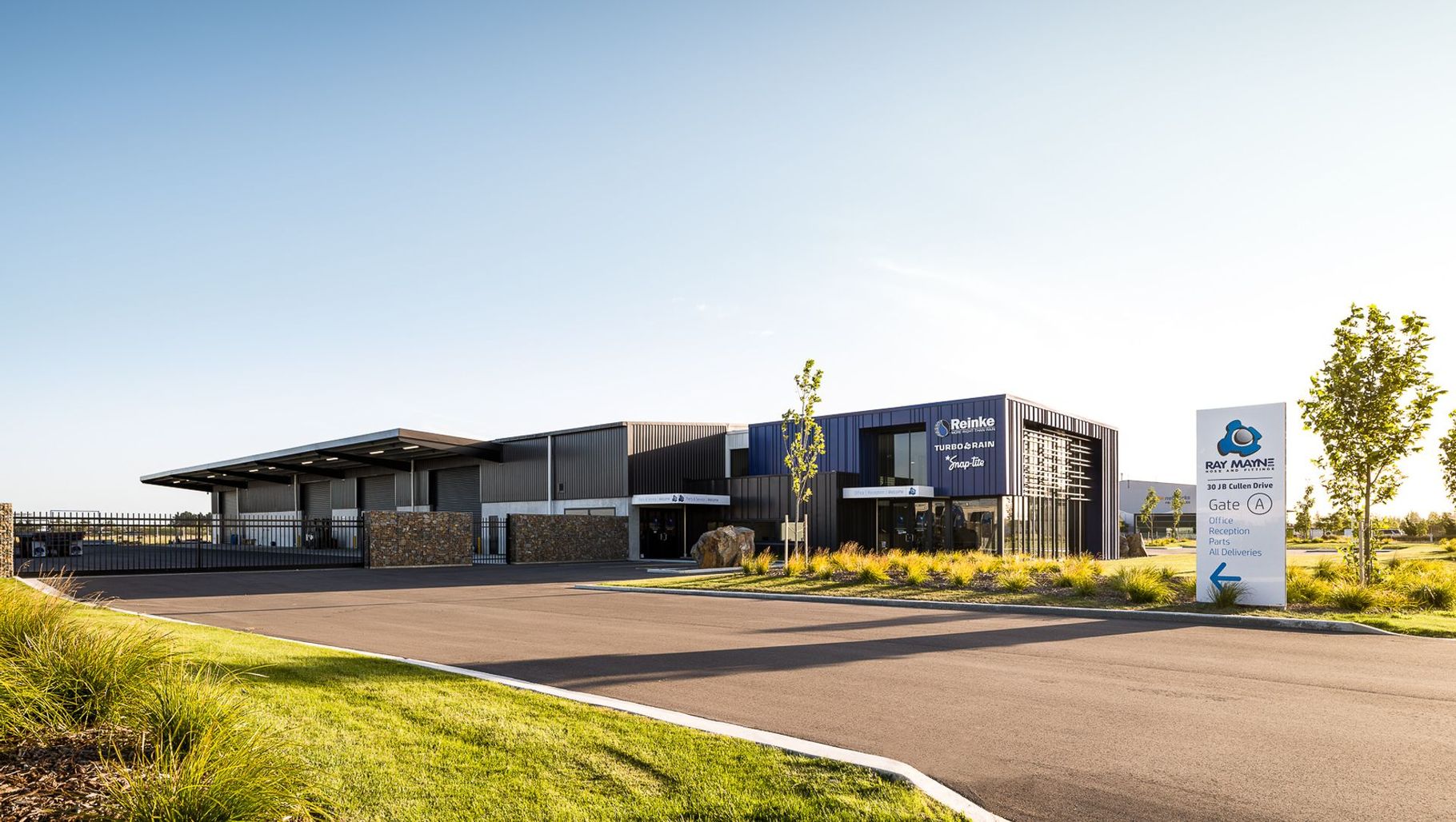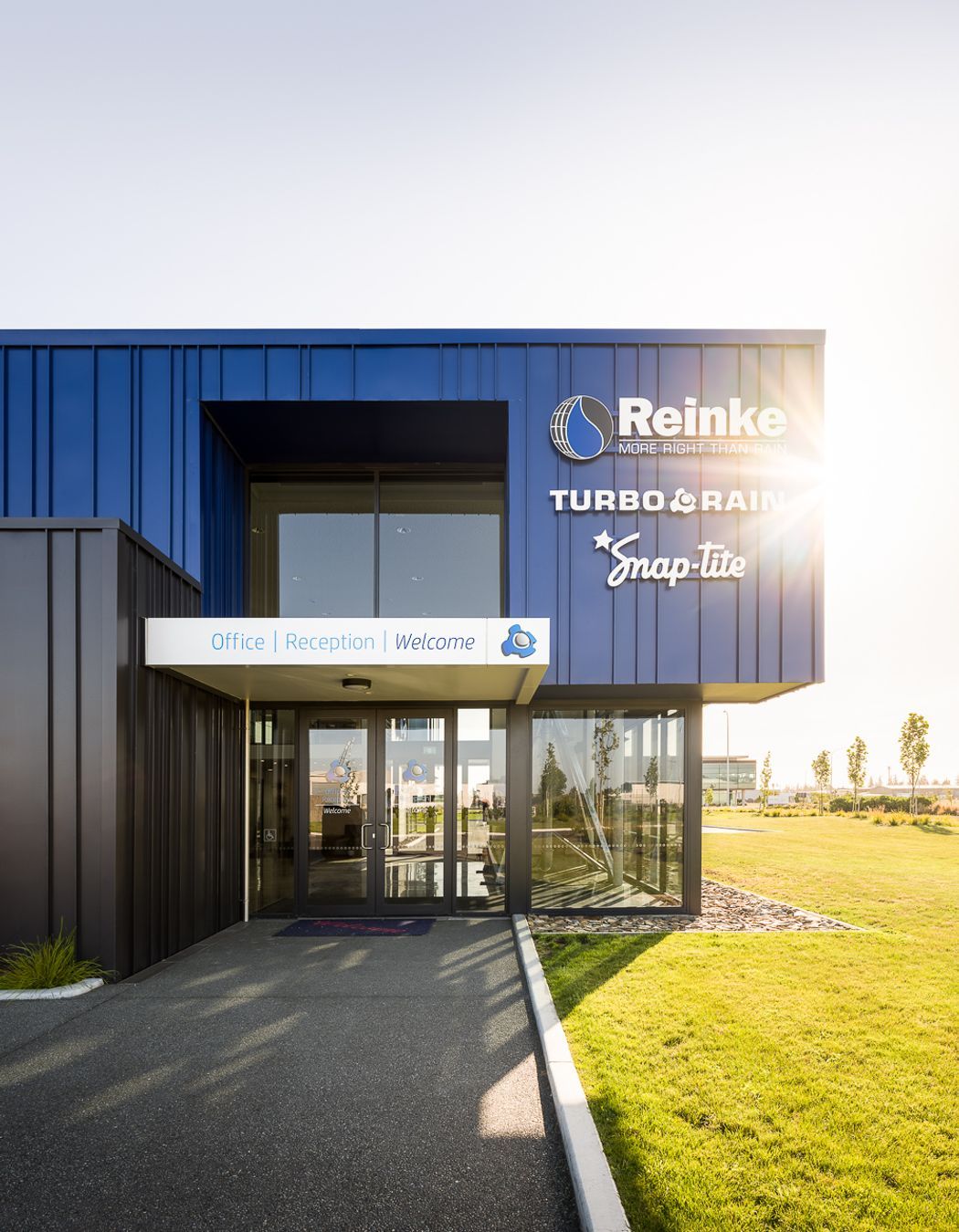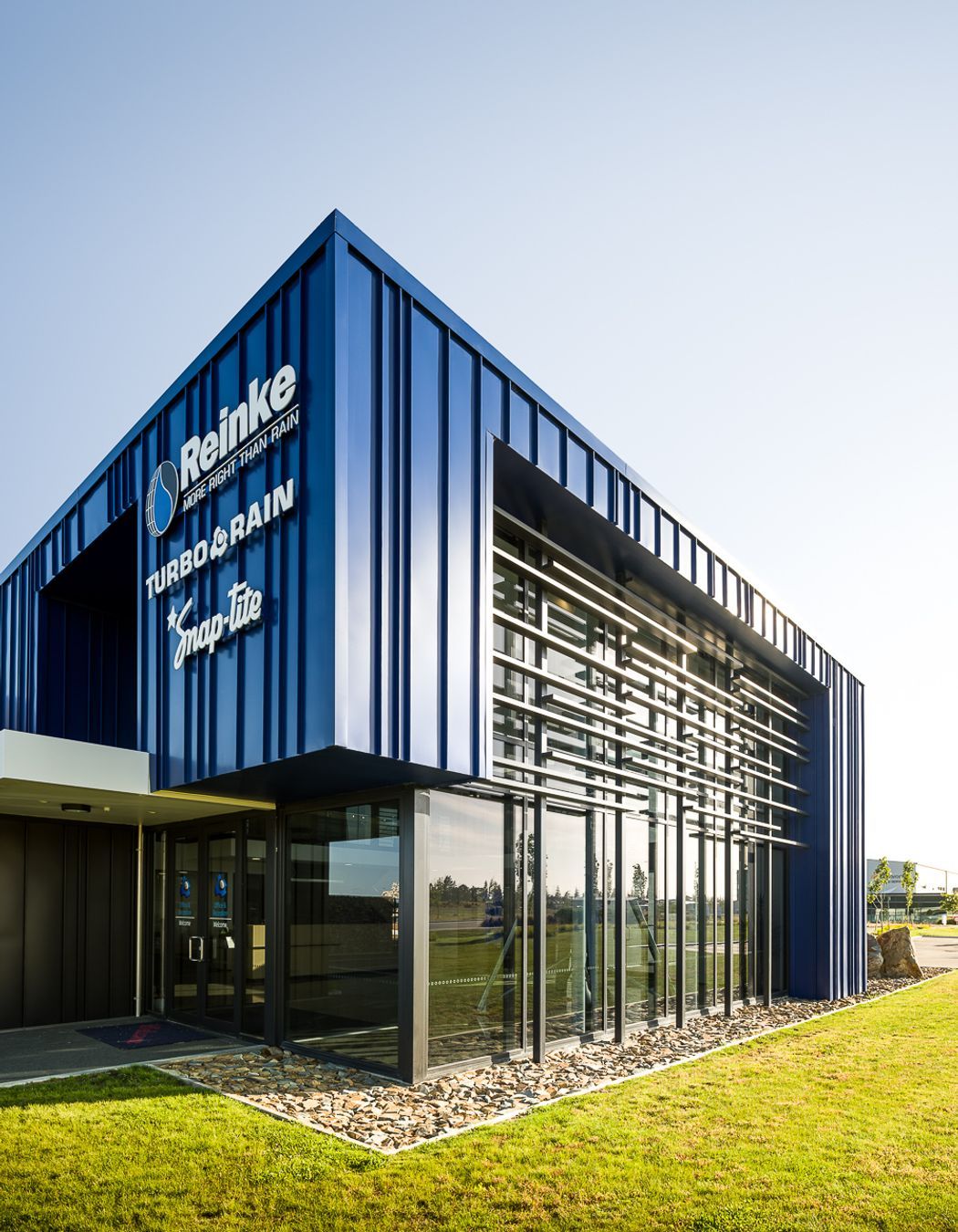 ArchiPro Project Summary - New commercial headquarters for an industry-leading irrigation company featuring a 3,050m² facility with a large storage warehouse, workshop, and a contemporary two-story office block designed with varied materials for a striking presence in Ashburton Business Park.