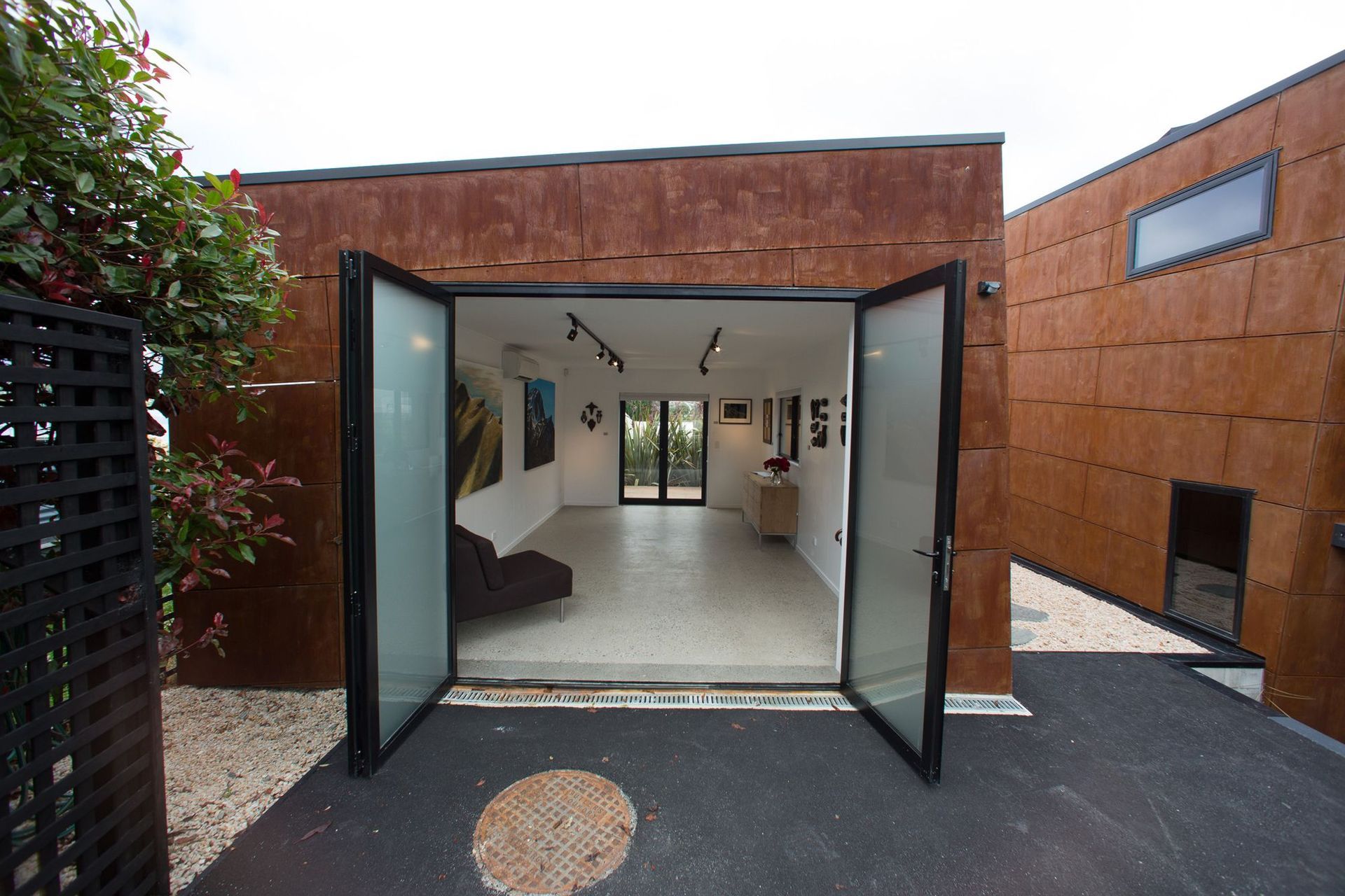 ArchiPro Project Summary - A transformative addition and alteration project on the shores of Lake Wakatipu, featuring a re-wrapped house design that includes a workspace for art, a private gallery, and a striking new entry, office, and living room, complemented by Basalt-clad masonry.