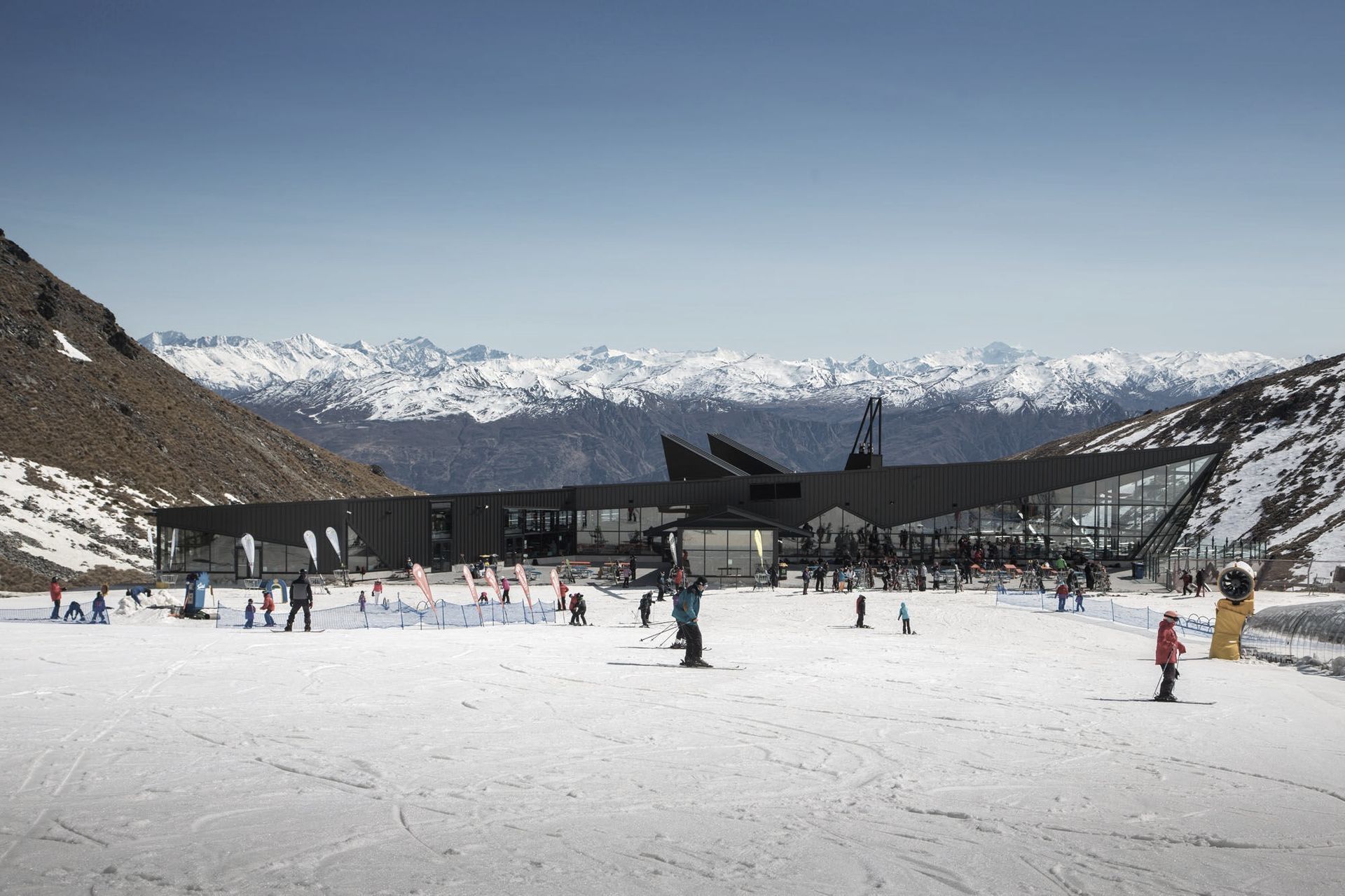 ArchiPro Project Summary - The Remarkables Base Building enhances the skiing experience with state-of-the-art amenities in a stunning mountainous landscape.