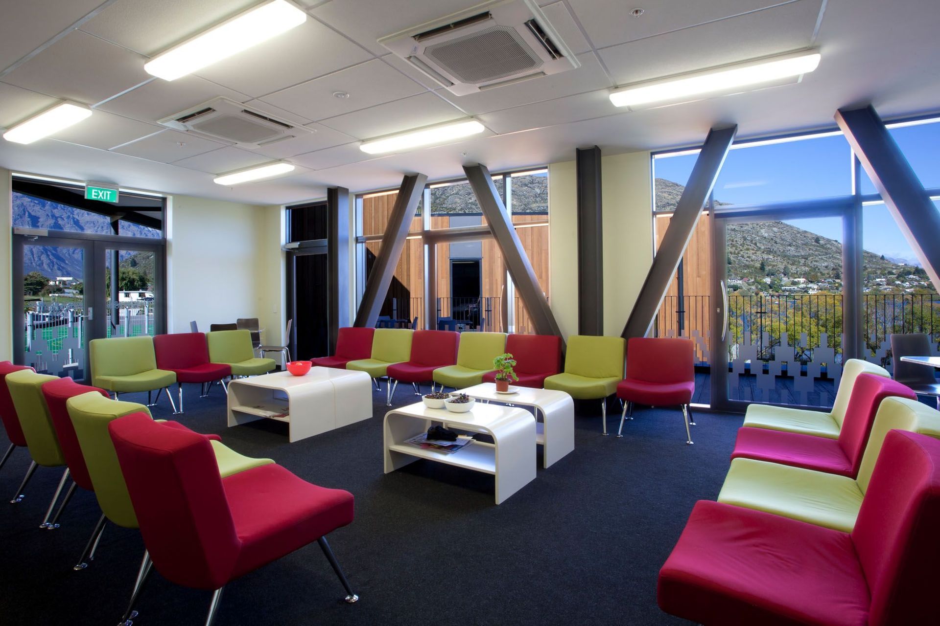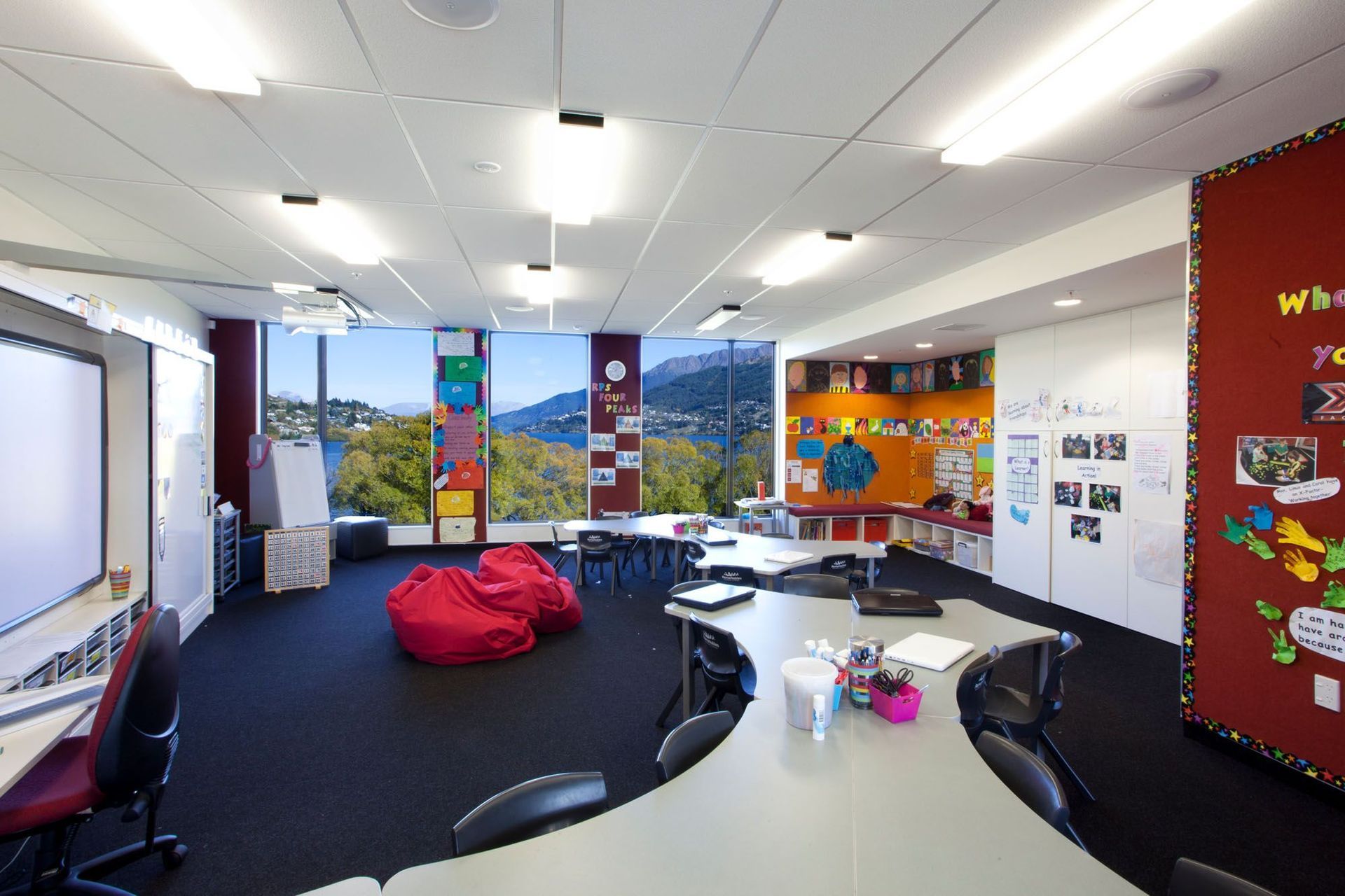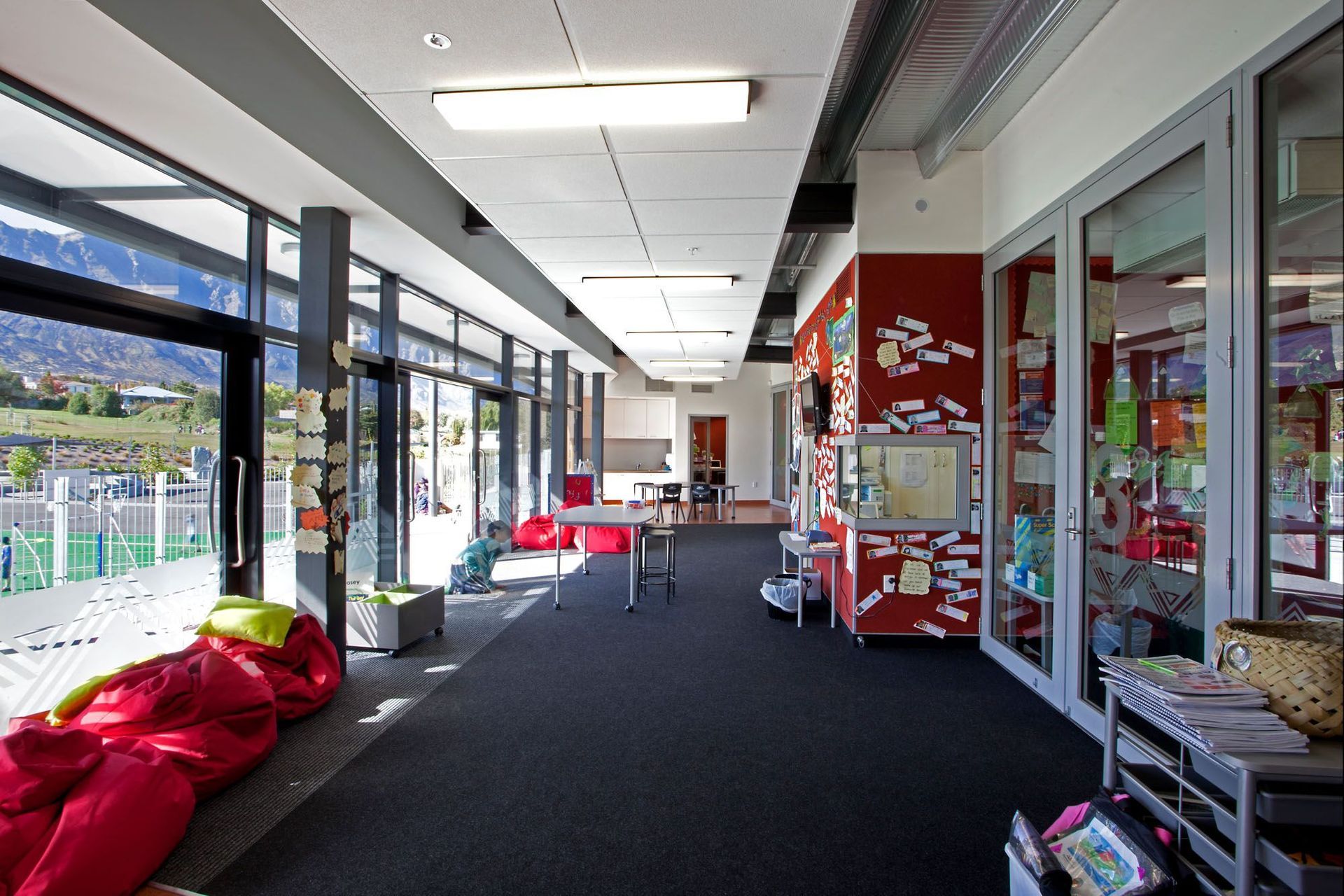 ArchiPro Project Summary - Award-winning primary school designed by Babbage Architects, featuring an adaptable environment that embraces core educational values, set against the stunning backdrop of Lake Wakatipu and the Remarkables.