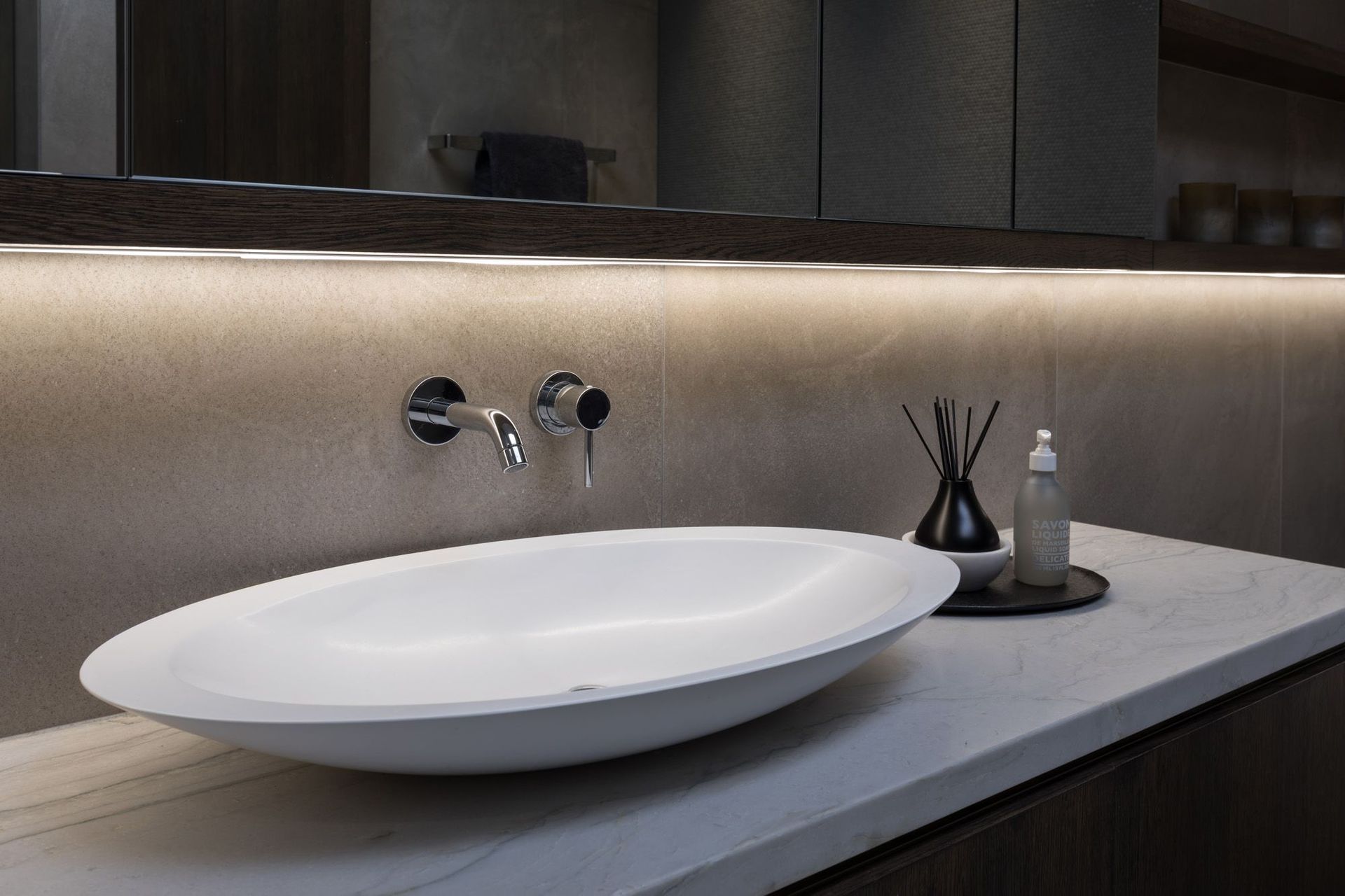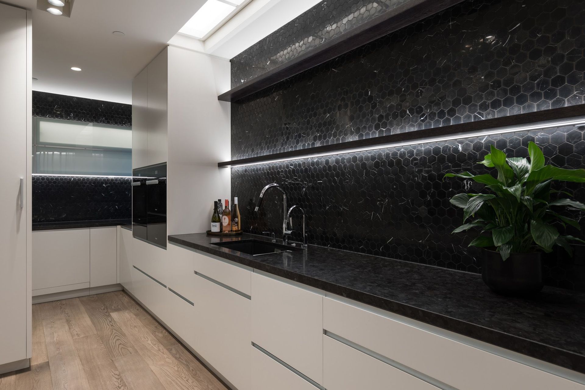 ArchiPro Project Summary - A complete refurbishment of a luxurious penthouse apartment in Remuera, featuring a sophisticated material palette, an expansive kitchen with a modern scullery, and expertly designed interiors by Paul Rosnell and Gretl Lukas.