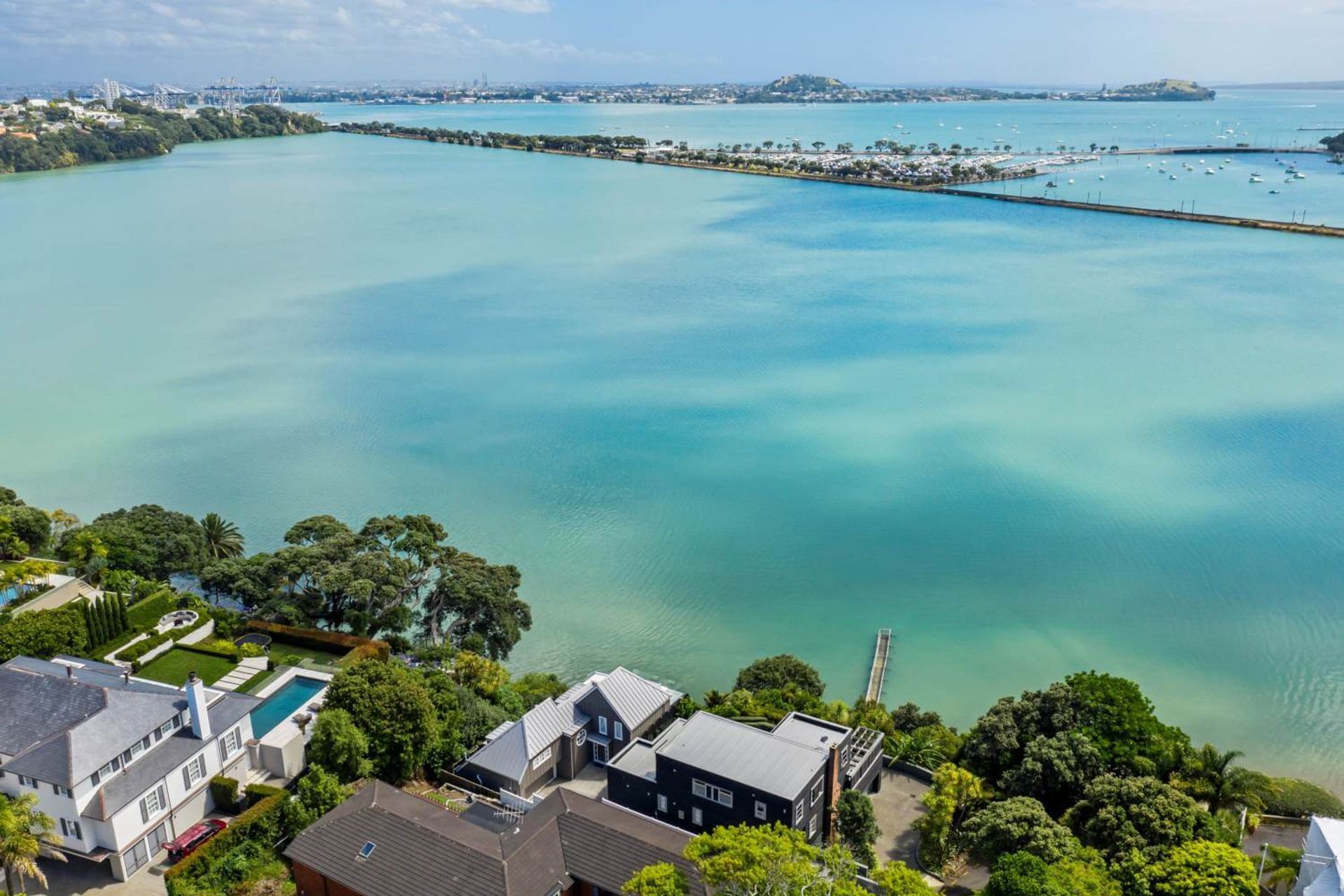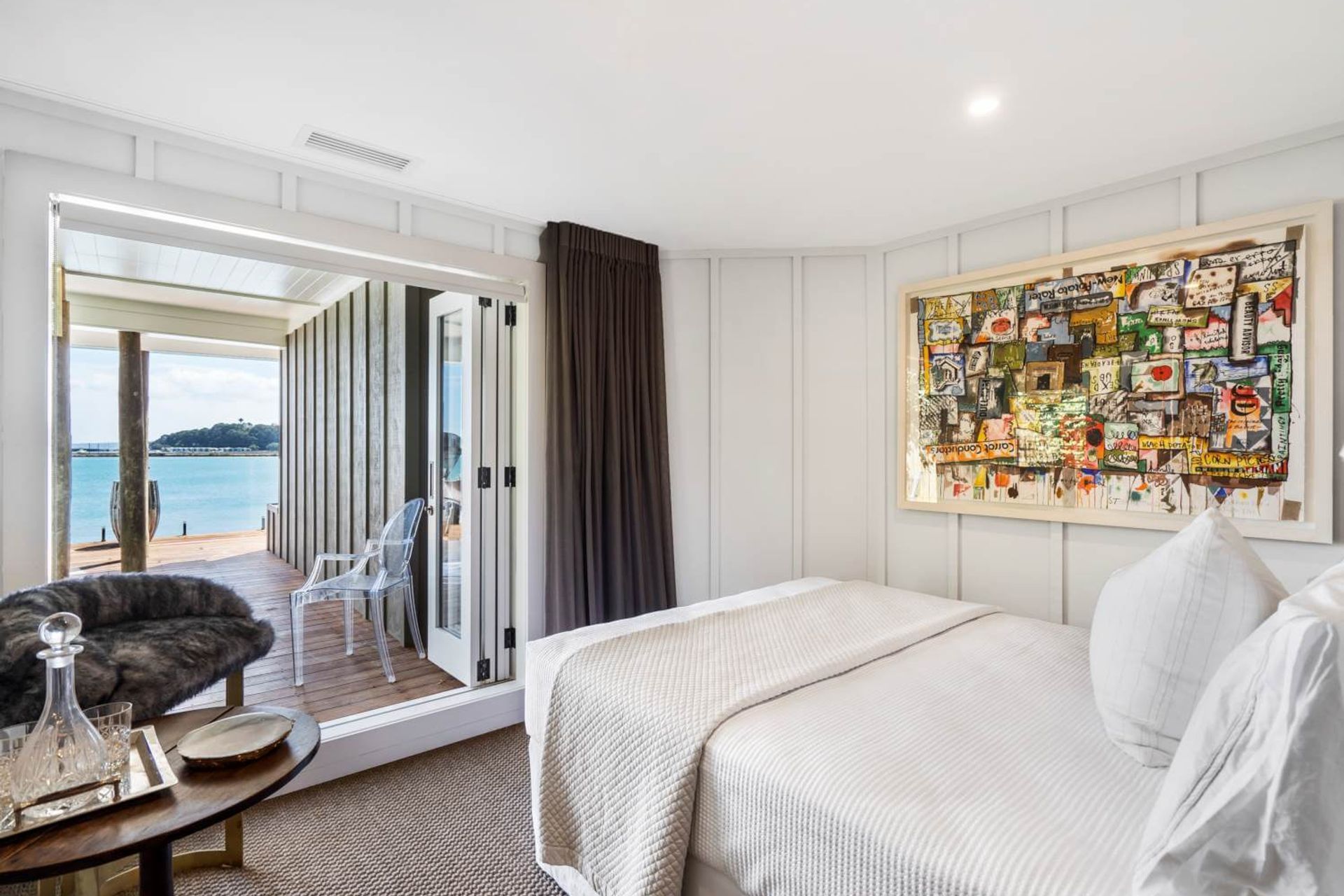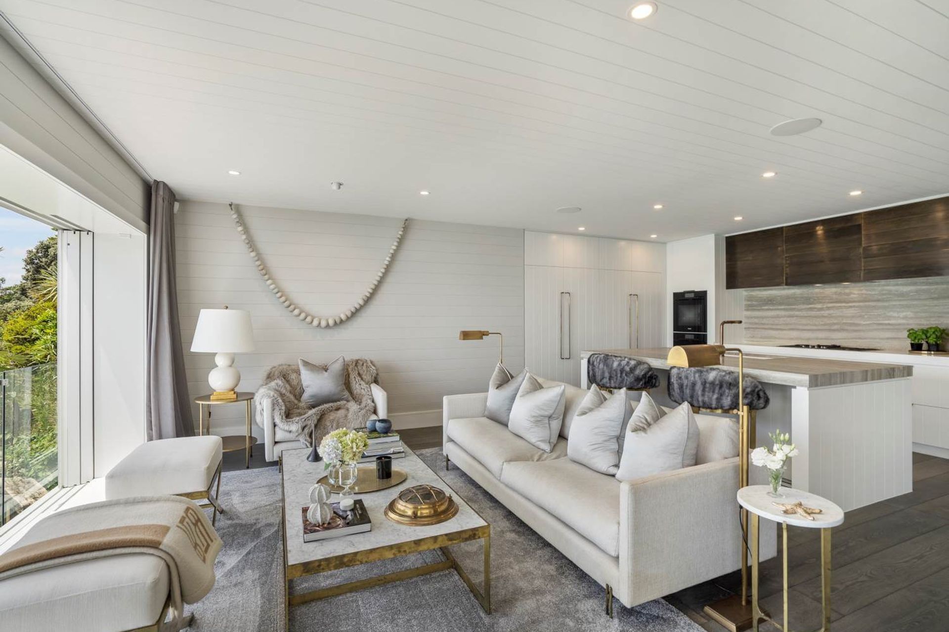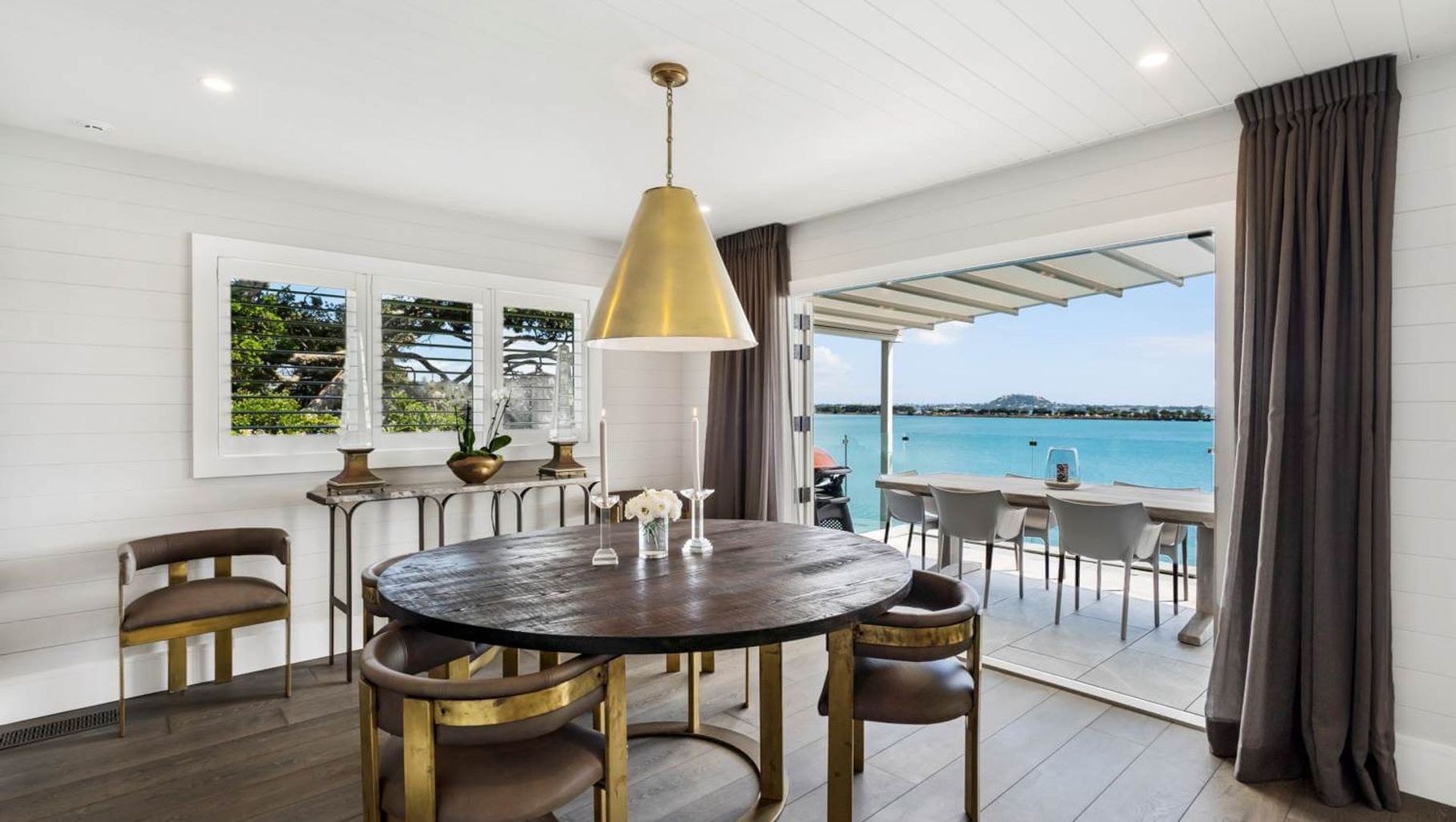 ArchiPro Project Summary - Custom joinery designed to enhance breathtaking views of Hobson Bay, featuring perfectly aligned internal elements and innovative external solutions that fold and slide away for unobstructed vistas.