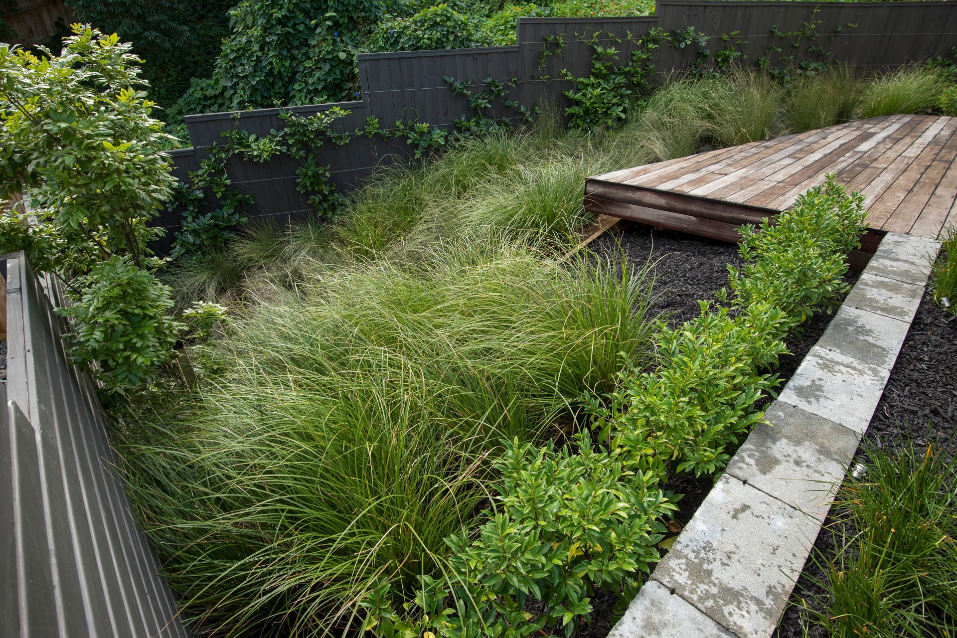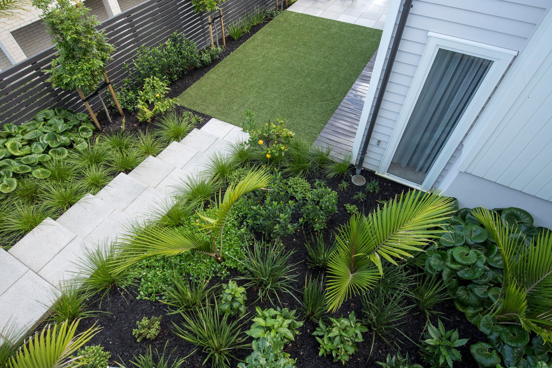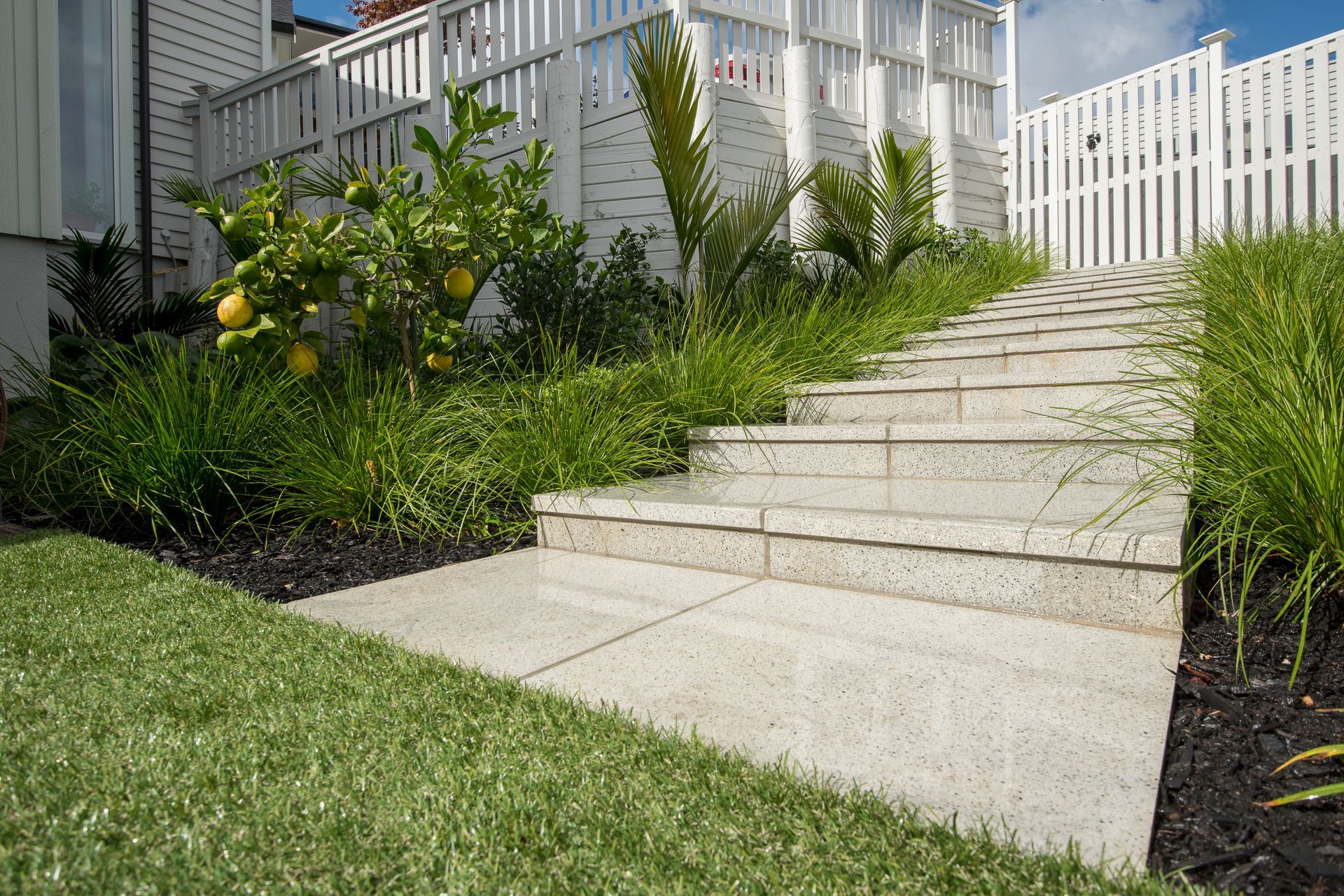 ArchiPro Project Summary - Innovative landscaping solutions for a steep Remuera site, featuring a welcoming entrance, a private entertainment area, and a natural water feature, complemented by low-maintenance planting and durable materials for lasting beauty.