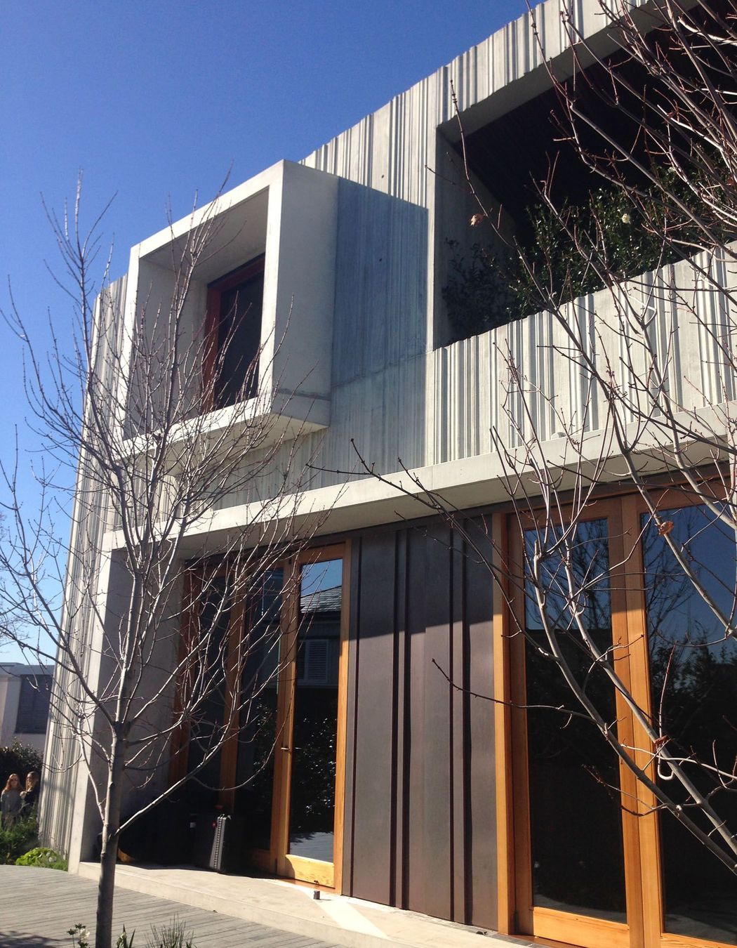 ArchiPro Project Summary - Remuera House showcases modern urban design with composite materials and brutalist architecture, featuring balconies and innovative siding for enhanced daylighting.