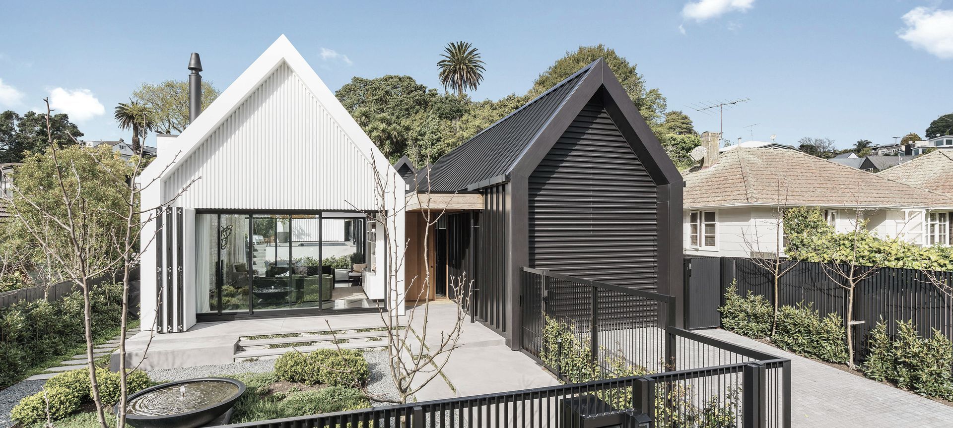 ArchiPro Project Summary - A striking new build in Remuera, featuring innovative design elements, in situ concrete finishes, and a unique black and white exterior, creating a resort-style home that balances modern aesthetics with functional living.