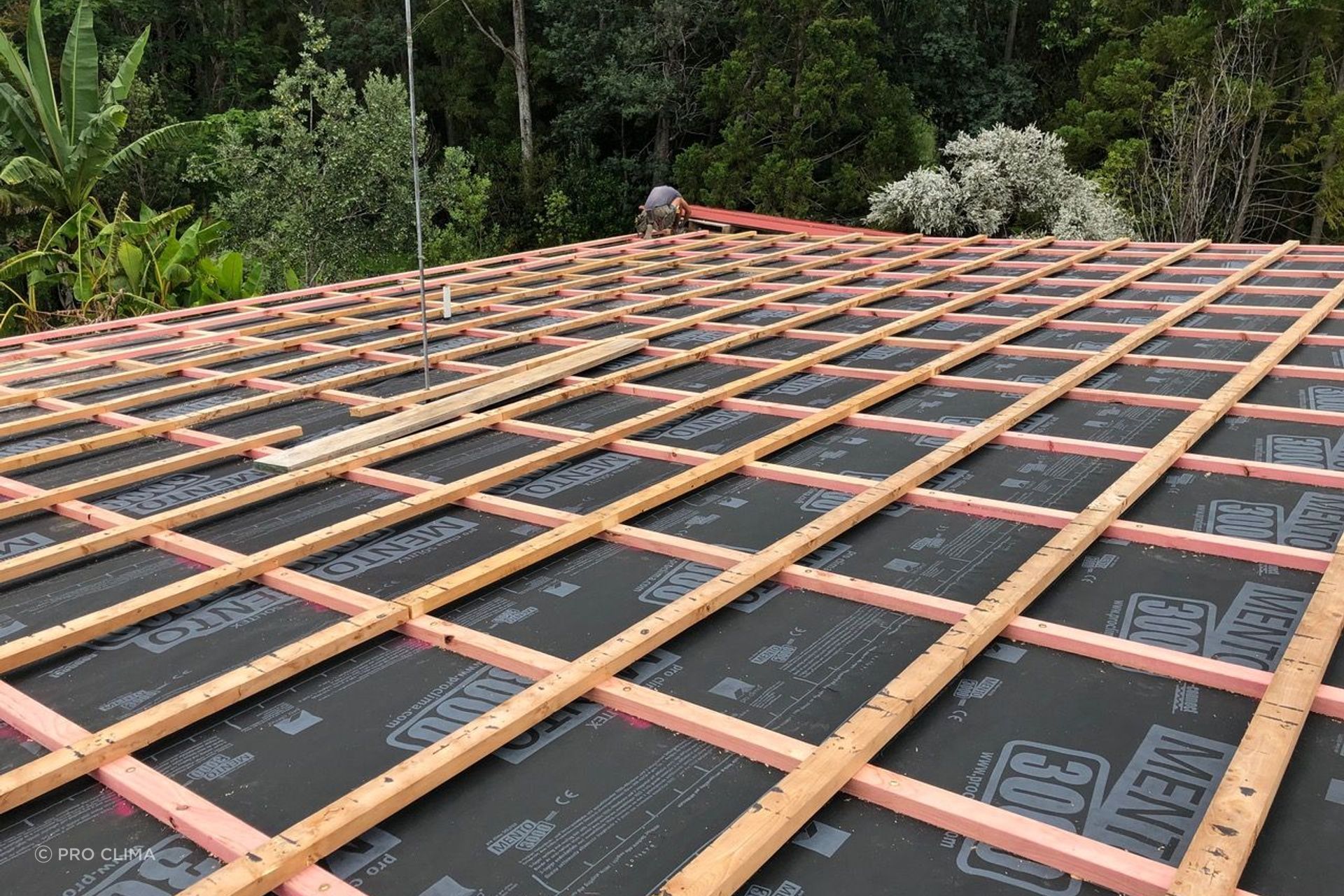 As all pro clima SOLITEX underlays are non-porous but highly vapour permeable, they can be installed right against the insulation even on roofs without the risk of moisture wicking through to the insulation. Keeping the structure and insulation dry during construction is critical to the long term performance and durability of the building envelope, and as Till was doing most of the work either by himself or with help from a friendly neighbour, having a decent amount of time up his sleeve to install battens and claddings later was priceless.