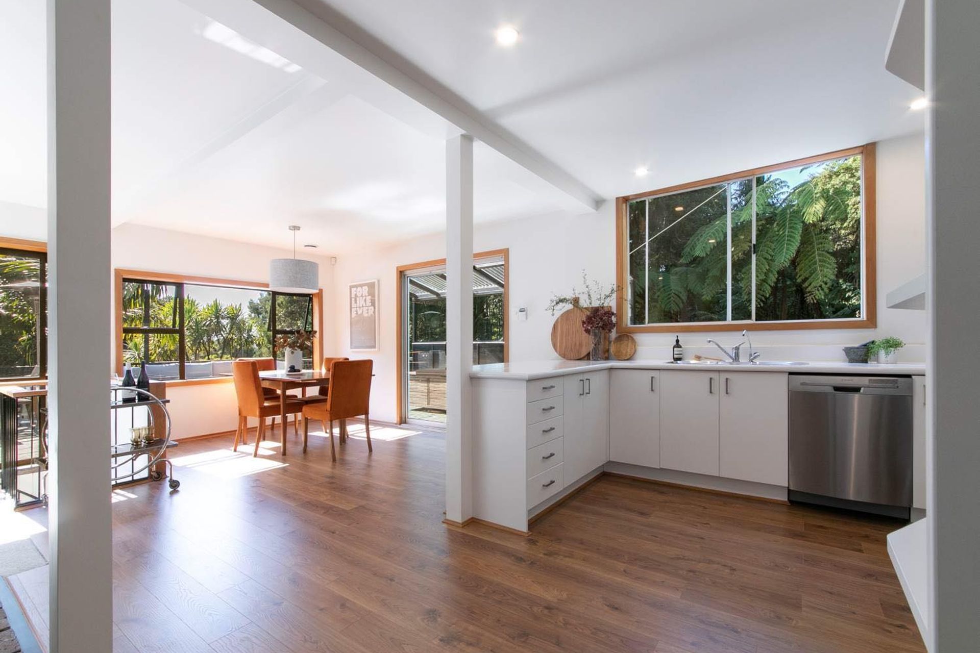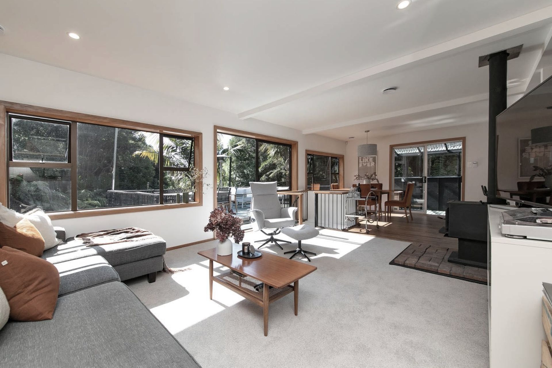 ArchiPro Project Summary - A stunning interior renovation in Titirangi, transforming 75% of the home with modern insulation and design while preserving its retro charm, featuring an open living space and a beautifully renovated bathroom, highlighted by a feature in Renovate magazine.