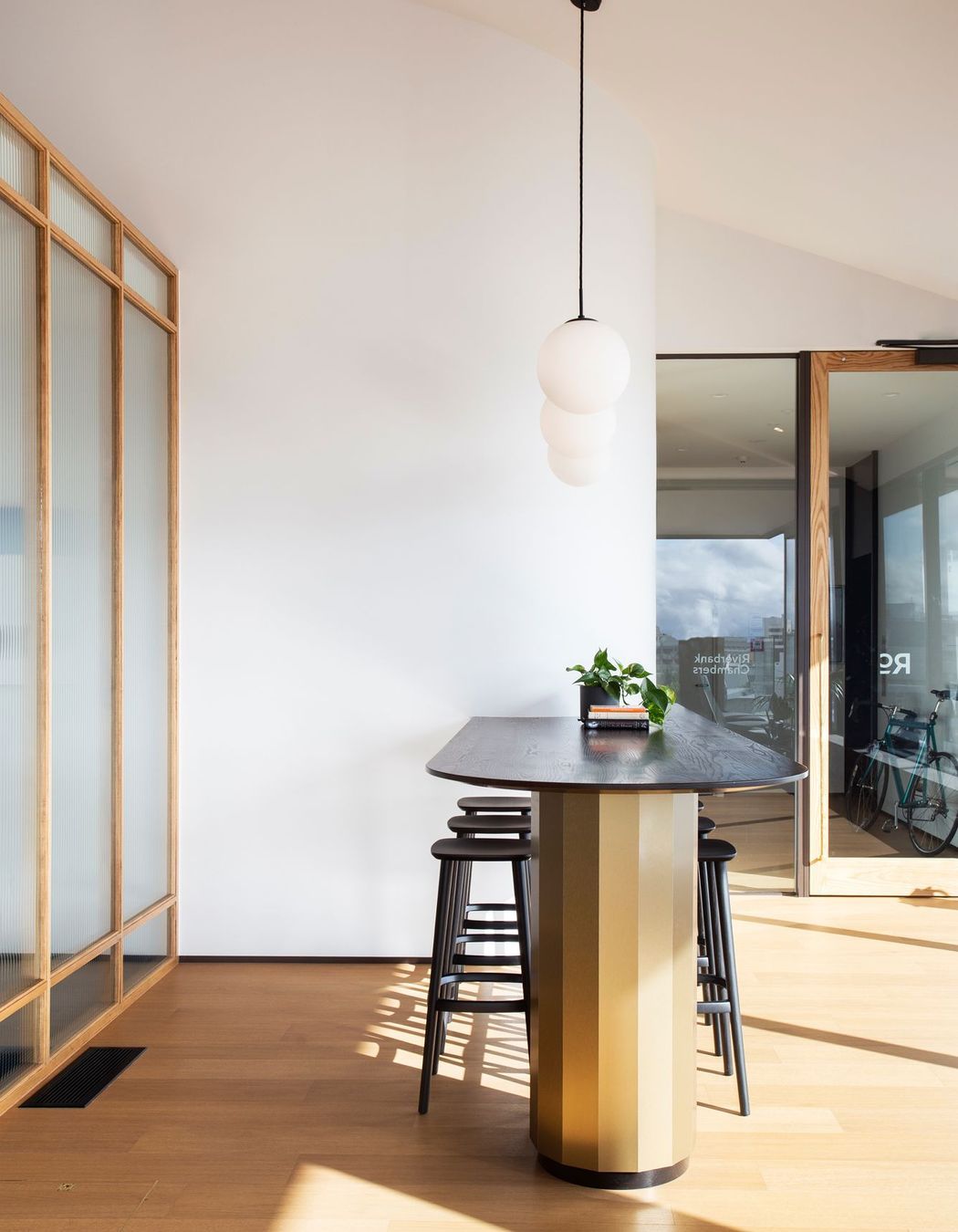 ArchiPro Project Summary - Riverbank Chambers: A design-led environment for Waikato's barristers, blending traditional materiality with contemporary execution to foster collegiality and best practices in law.