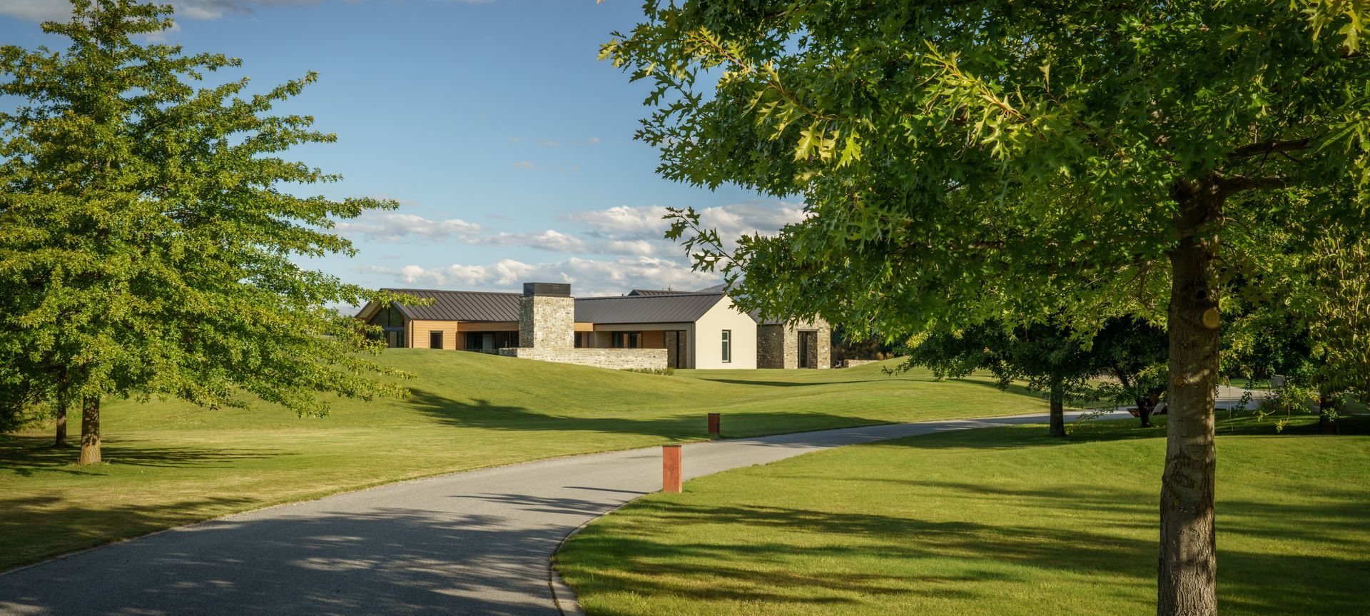 ArchiPro Project Summary - Classic pavilion-style family home completed in 2022, featuring schist, cedar weatherboards, and seamless outdoor connections, set in a picturesque landscape, embodying luxury and meticulous design.