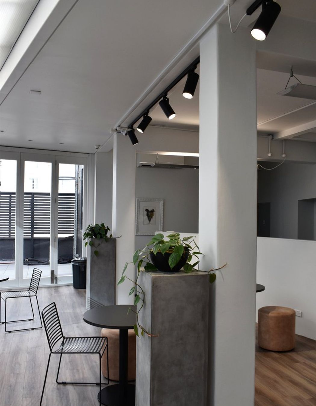 We started with space-planning the two levels, created 3D renders, and selected finishes based on the renders and then install followed. We specified a contemporary 3D brick application made from fibreglass that was applied to selected walls. This gave a New York loft aesthetic paired with the heritage style of Queen arcade architecture and fitted with the clients desire for a slight industrial Scandinavian, black and white space. Timber vinyl flooring was laid throughout the breakout and collaboration spaces to add some depth and warmth, whilst new paint, carpet and lighting gave the tenancy a much needed refresh.