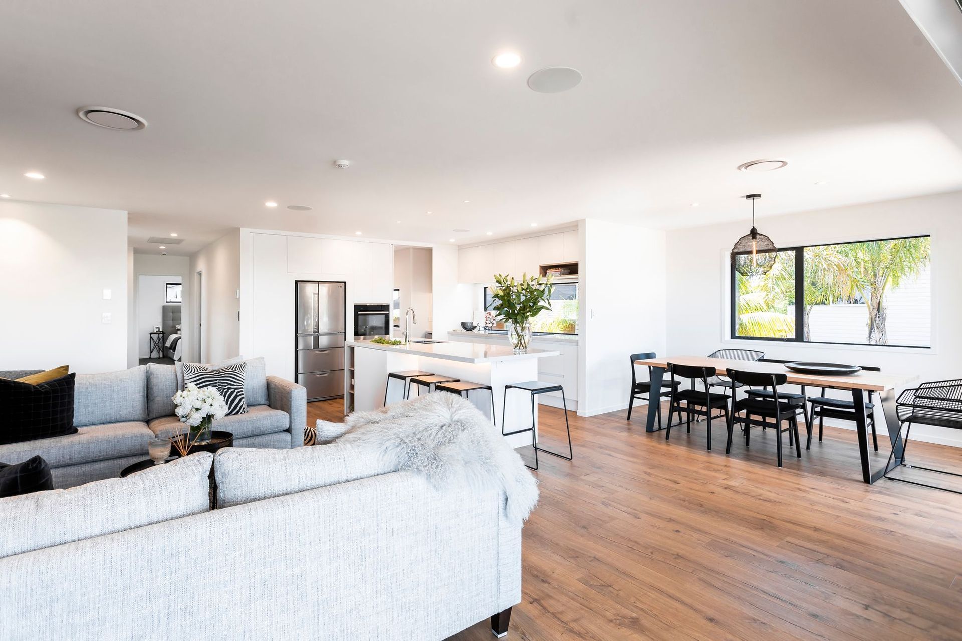 ArchiPro Project Summary - A modern blend of aesthetics and functionality in Rothesay Bay, featuring exquisite wood flooring and curated furniture.