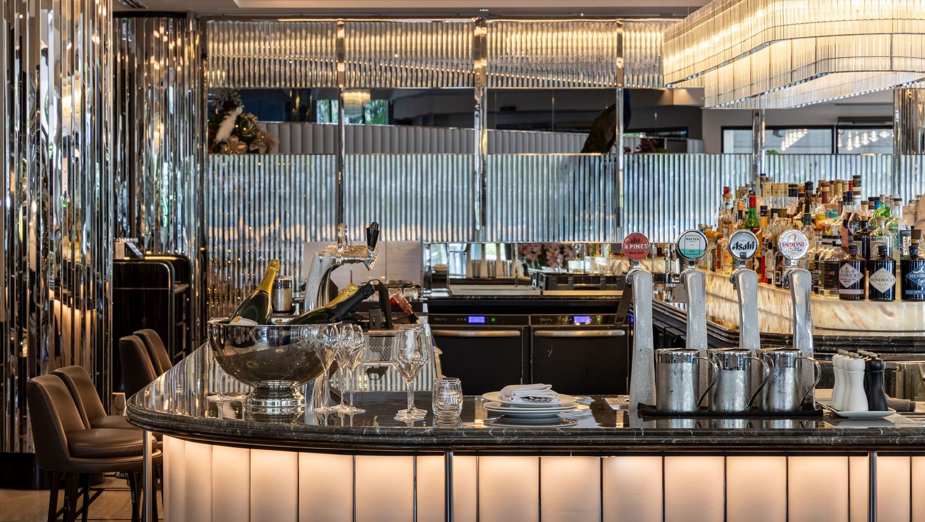 ArchiPro Project Summary - Royce Hotel features exquisite marble work throughout its lobby, bathrooms, and public spaces, showcasing precise vein matching and design intent that enhances the luxury ambiance with a bold yet refined aesthetic.