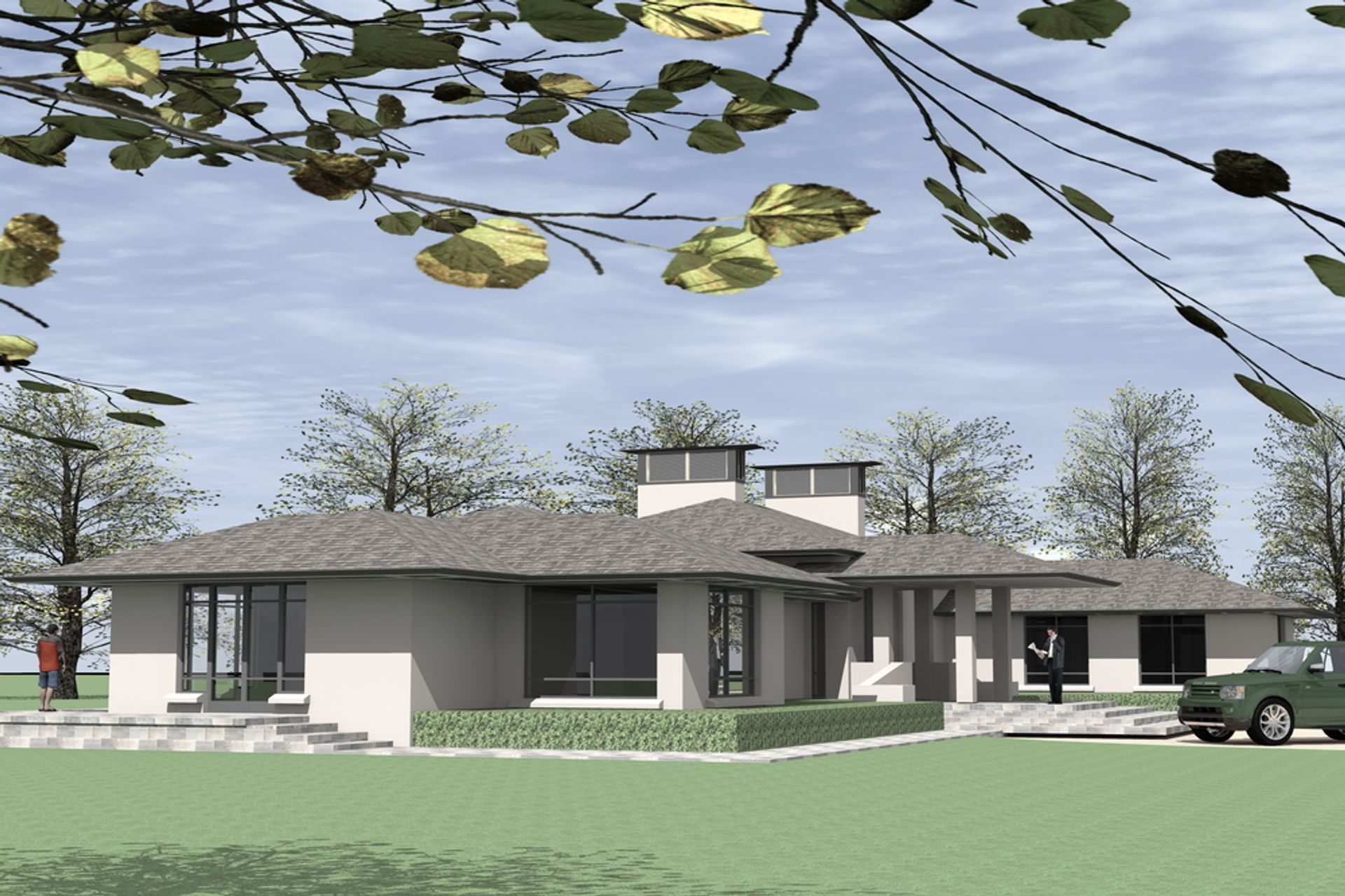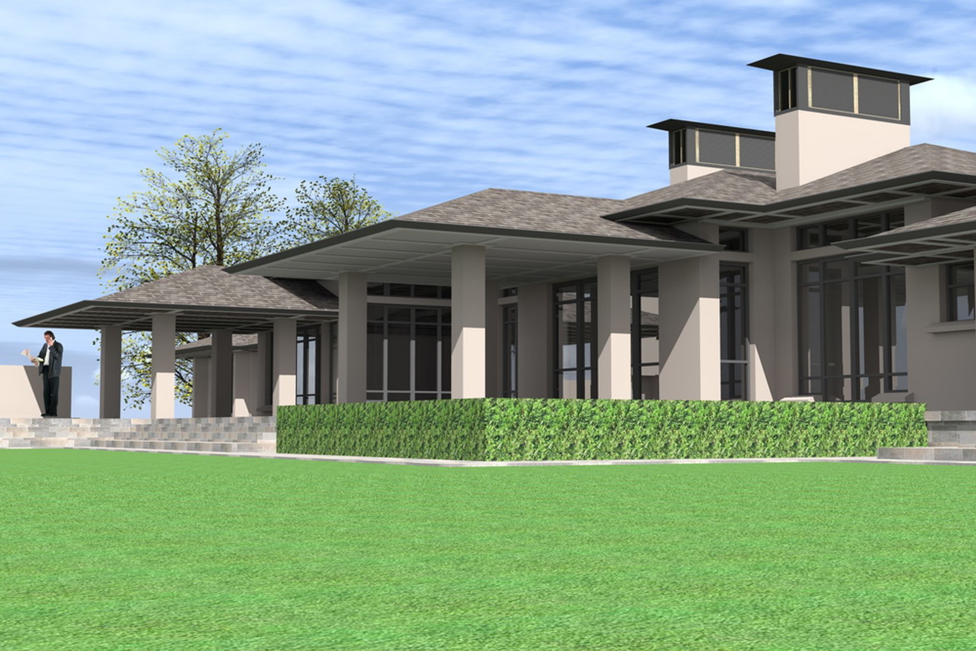 ArchiPro Project Summary - Elegant concept design featuring beautiful horizontal lines and signature MacPherson chimneys, set on a stunning rural property.