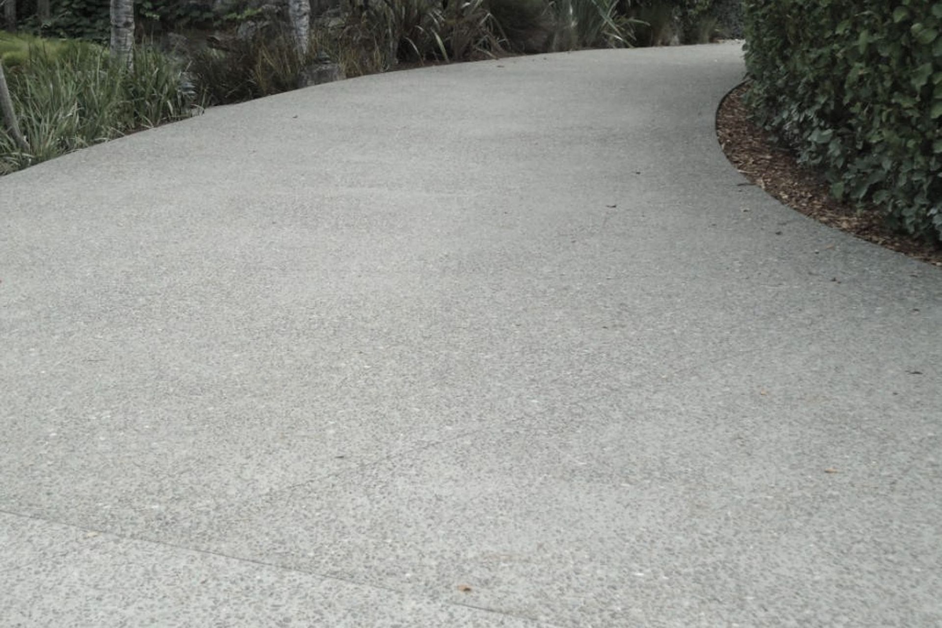 ArchiPro Project Summary - Stylish rural residential driveway featuring Longburn Pebble 20mm with black oxide, enhancing the property's aesthetic with grey and brown tones in a durable concrete finish.
