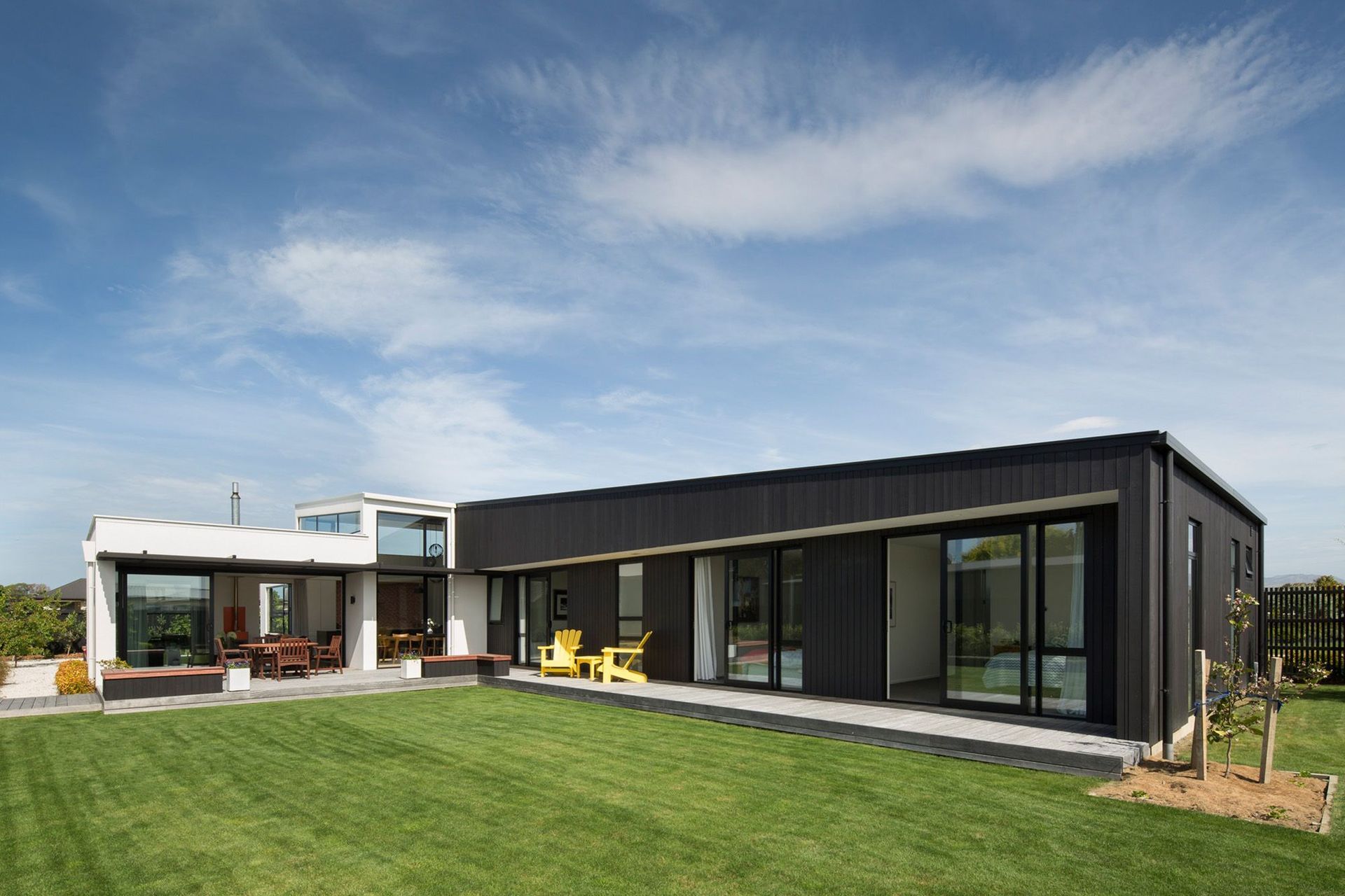 ArchiPro Project Summary - A thoughtfully designed residence featuring a blend of dark stained cedar and white Rockcote Integra, maximizing natural light and ventilation, completed in 2018 in collaboration with Hamish Ryan Construction.