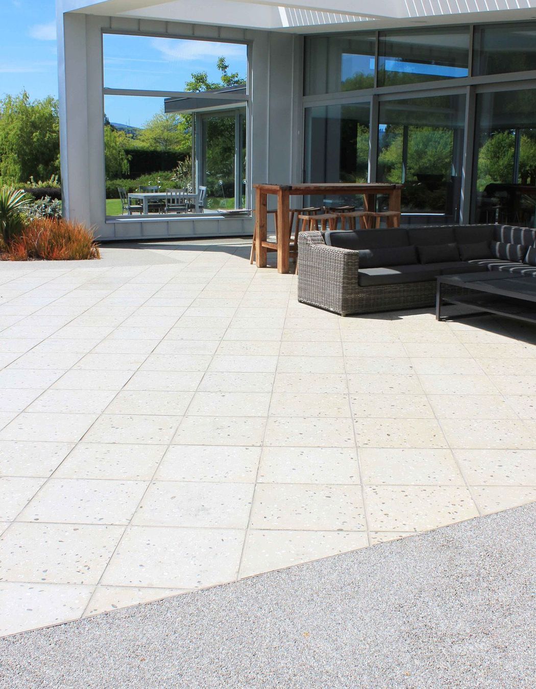 ArchiPro Project Summary - Award-winning Mosgiel garden featuring a large outdoor entertainment space, naturalistic materials, and a thoughtfully designed landscape that combines functionality with aesthetic appeal.