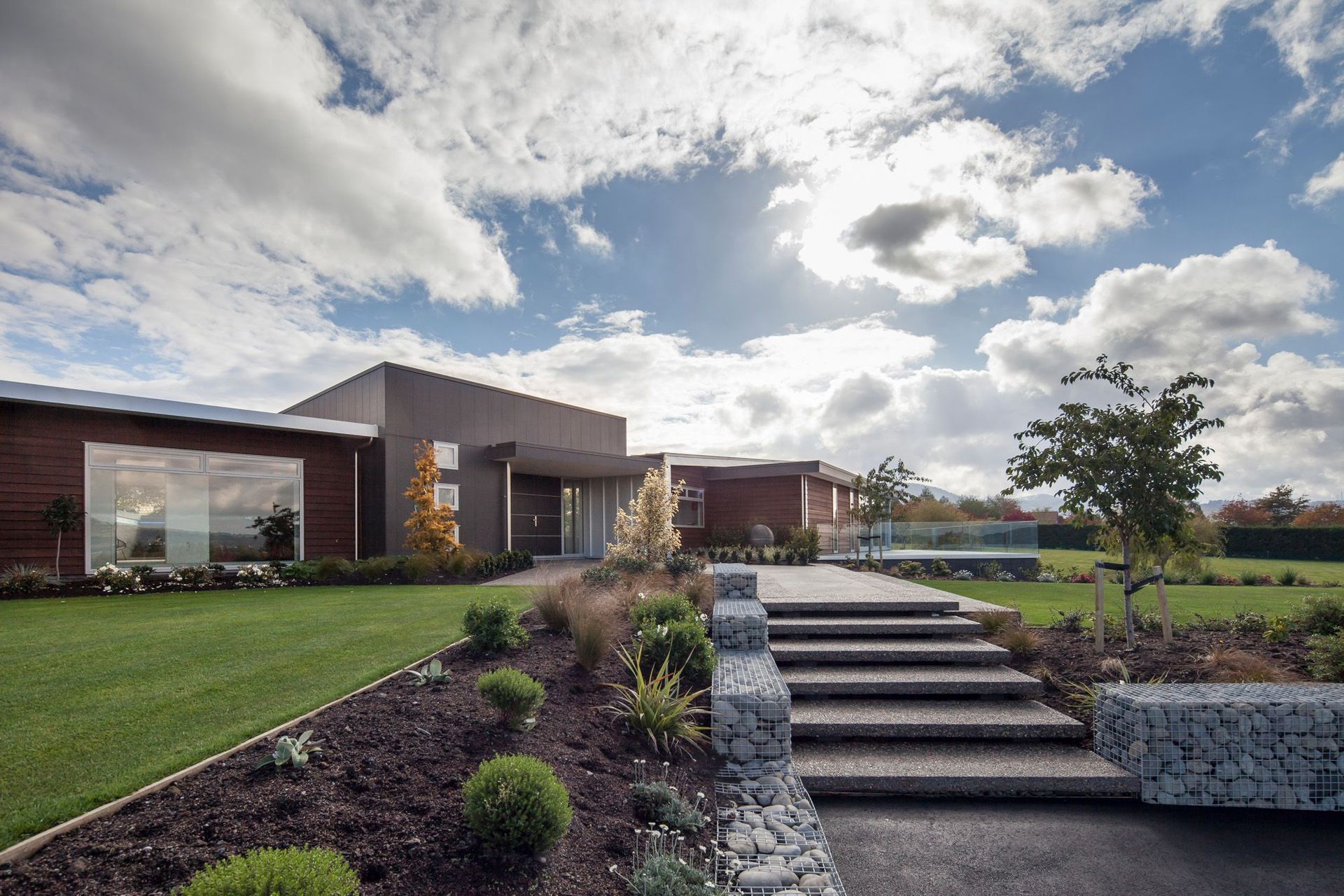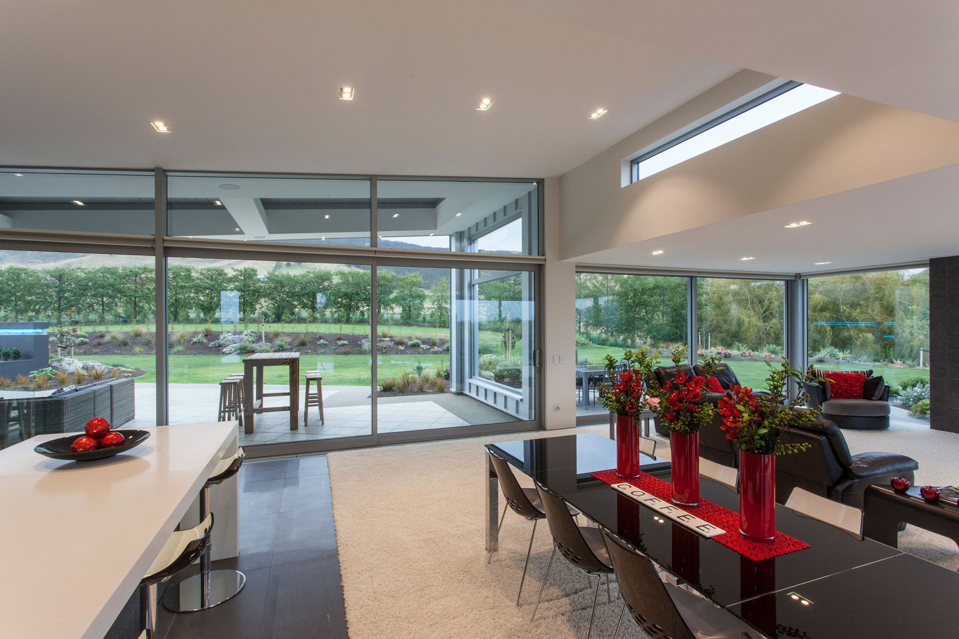 ArchiPro Project Summary - Award-winning contemporary family home on the Taieri Plains, designed by Reece Warnock to maximize stunning 360-degree views of the rural landscape, featuring expansive glass walls and strategically positioned living areas.