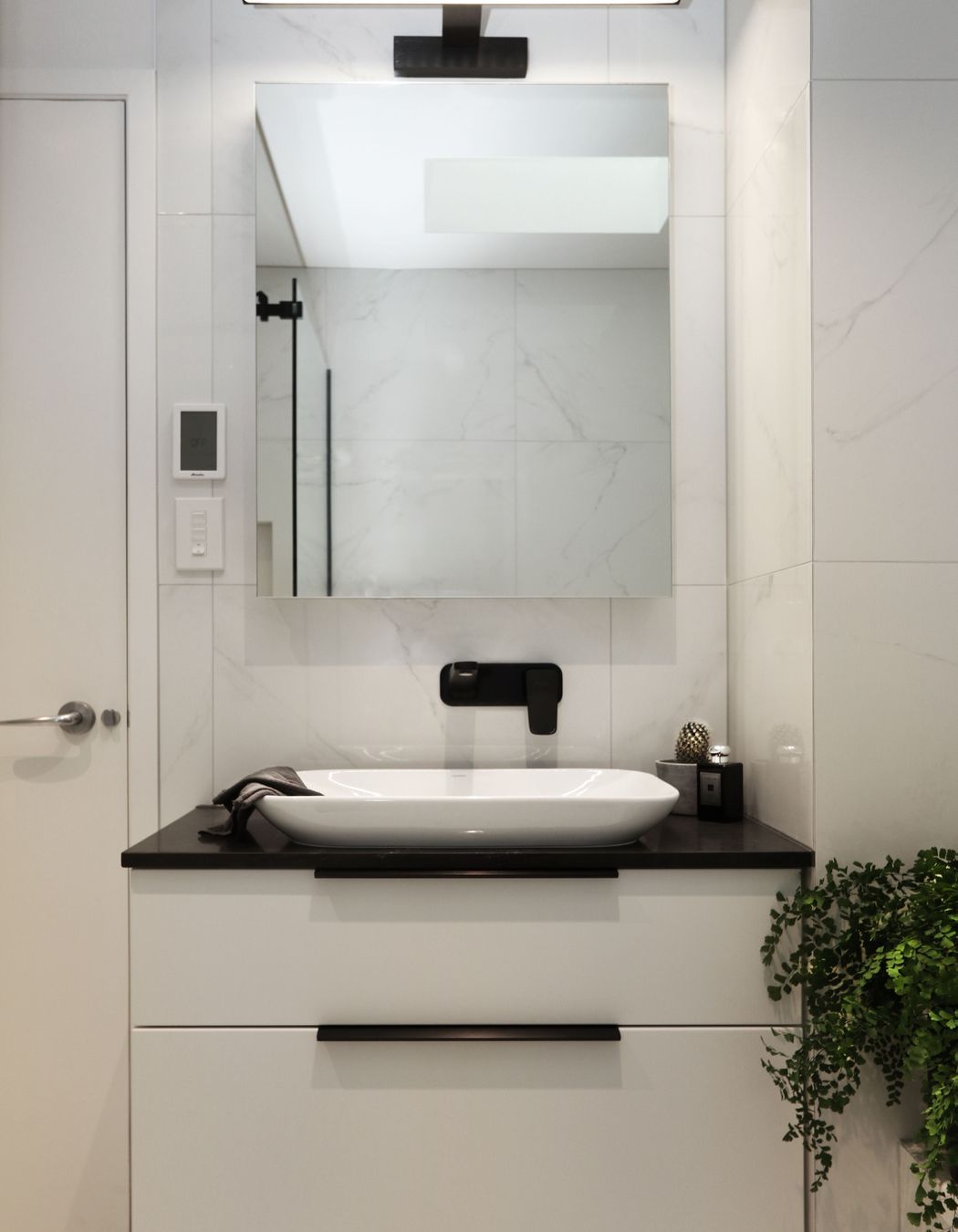 ArchiPro Project Summary - A sophisticated renovation in Grey Lynn featuring a contemporary monochromatic design, enhancing space with modern black fixtures and elegant finishes for a bright, functional bathroom.