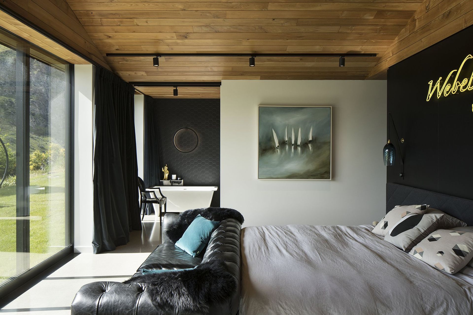 ArchiPro Project Summary - A stunning family residence in Queenstown, featuring a unique sawtooth roof design that harmonizes with the alpine landscape, offering a blend of independent living spaces and communal areas, while showcasing a collection of art.