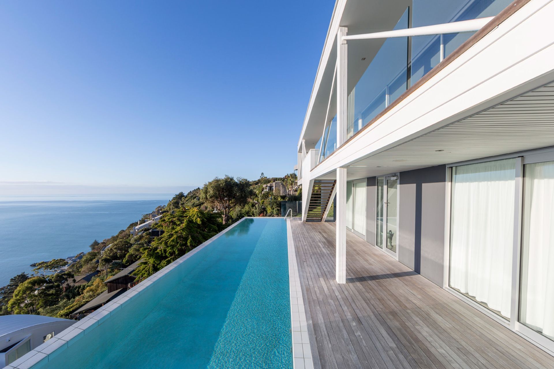 ArchiPro Project Summary - A harmonious blend of original 1960s architecture and modern design, featuring a stunning extension with three two-story buildings, an exterior glass lift, and a breathtaking pool overlooking Sumner, designed by Stewart Ross of Fulton Ross Team Architecture.