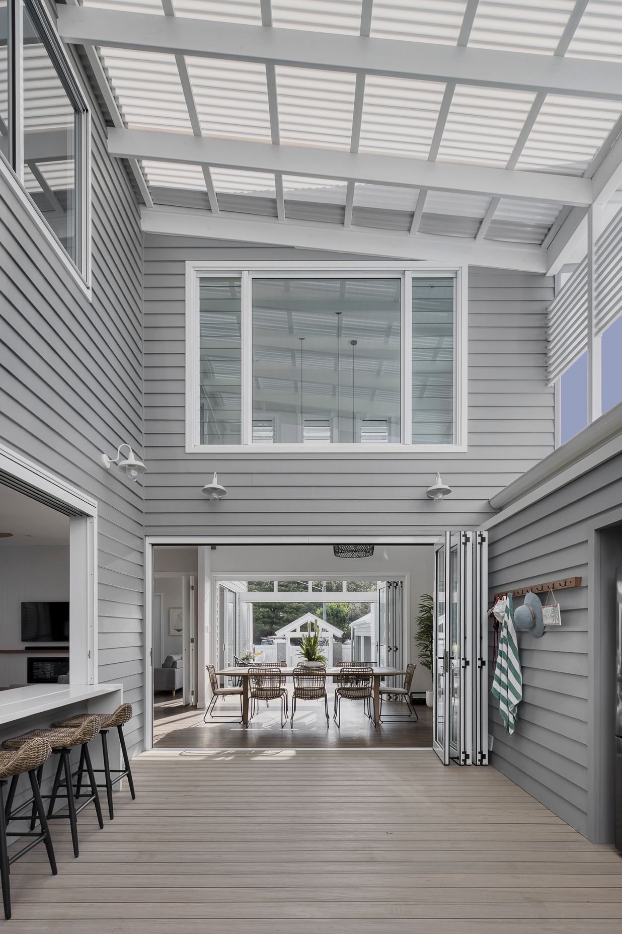 ArchiPro Project Summary - A reimagined beach house at Nobby Beach, blending original charm with modern design, featuring internal courtyards and breezeways for enhanced connectivity and privacy, honoring a family legacy while accommodating extended gatherings.