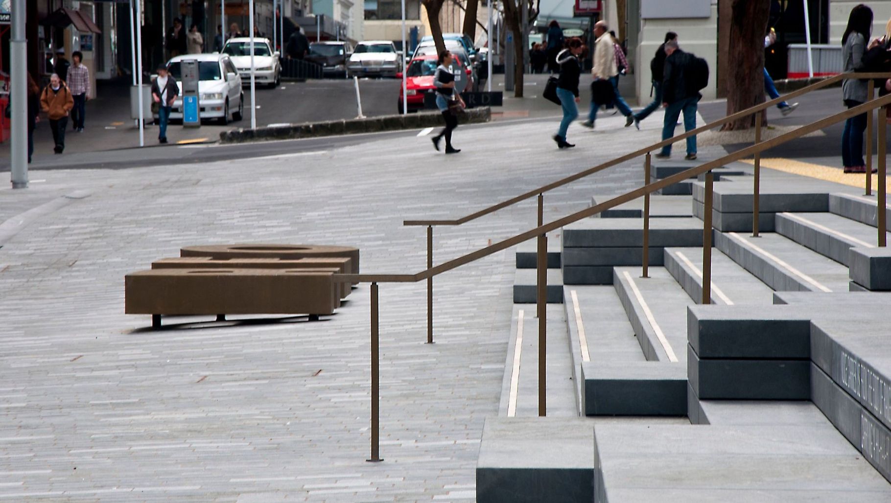 ArchiPro Project Summary - Revitalization of Auckland Central's Shared Spaces with a focus on pedestrian-friendly design, featuring 20,000m2 of granite paving, setts, kerbing, planters, and seating, enhancing consumer engagement and hospitality experiences.