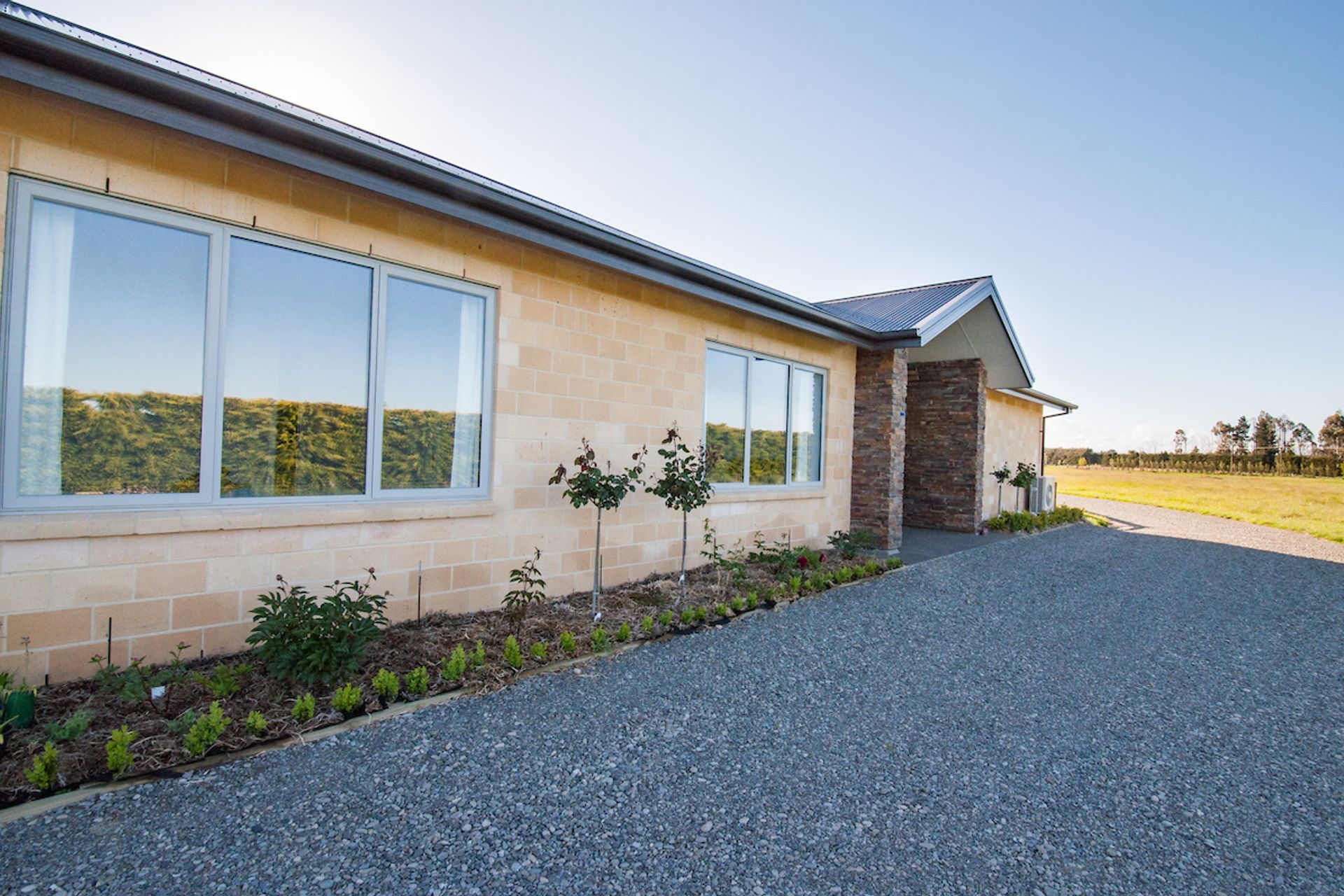 ArchiPro Project Summary - A thoughtfully designed 350m2 single-level residence featuring a boomerang shape that maximizes mountain views, incorporates a central courtyard for protection from prevailing winds, and creates a harmonious living space for family gatherings.