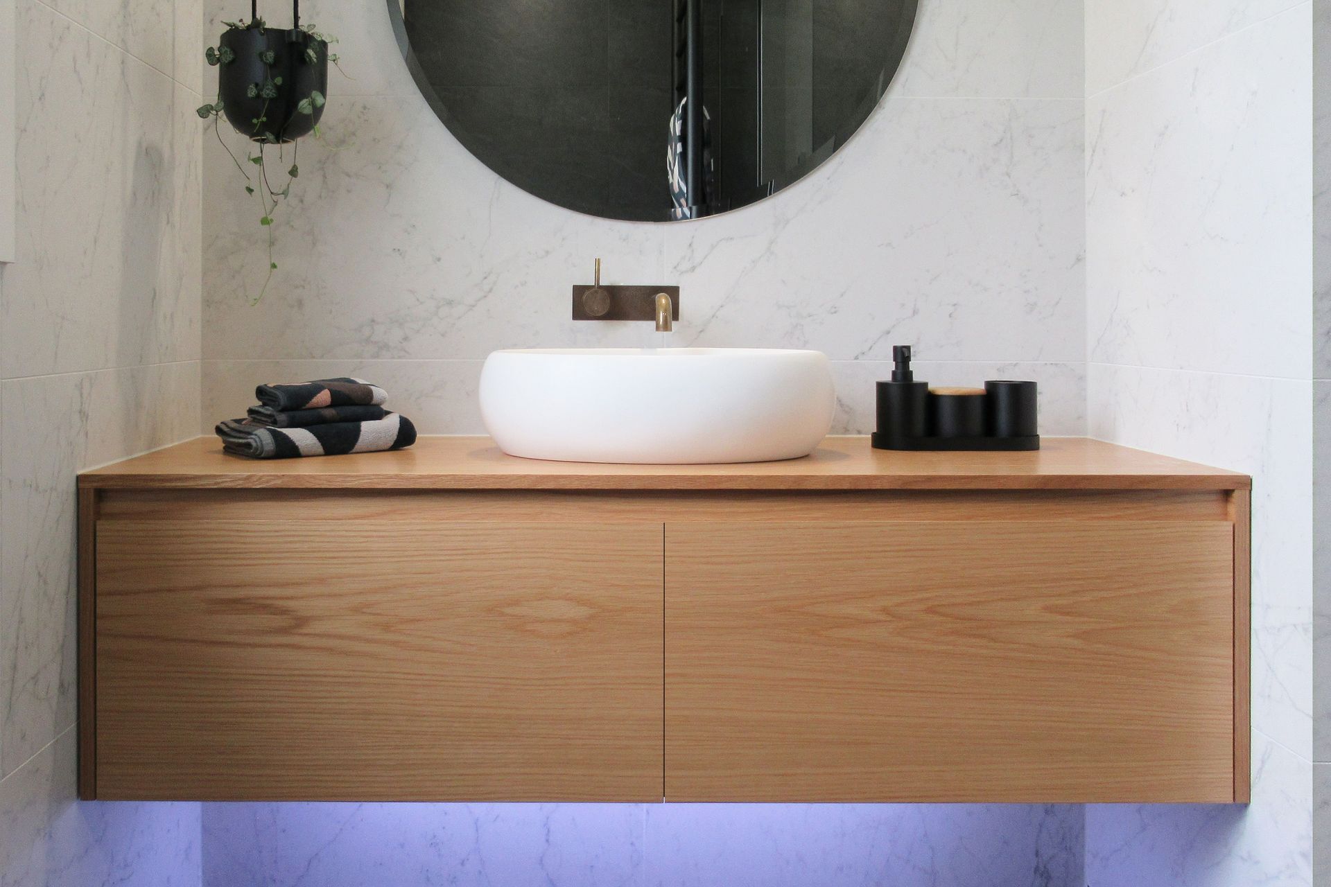 ArchiPro Project Summary - A modern renovation that combines style and functionality for a serene bathroom retreat.