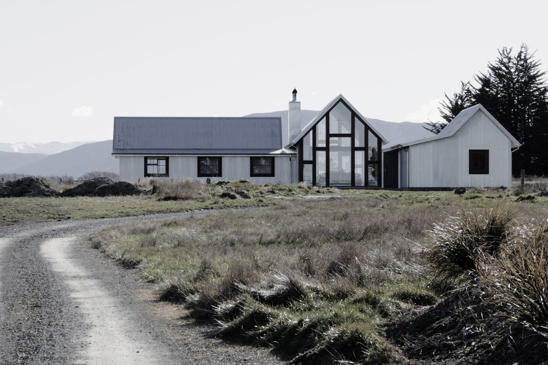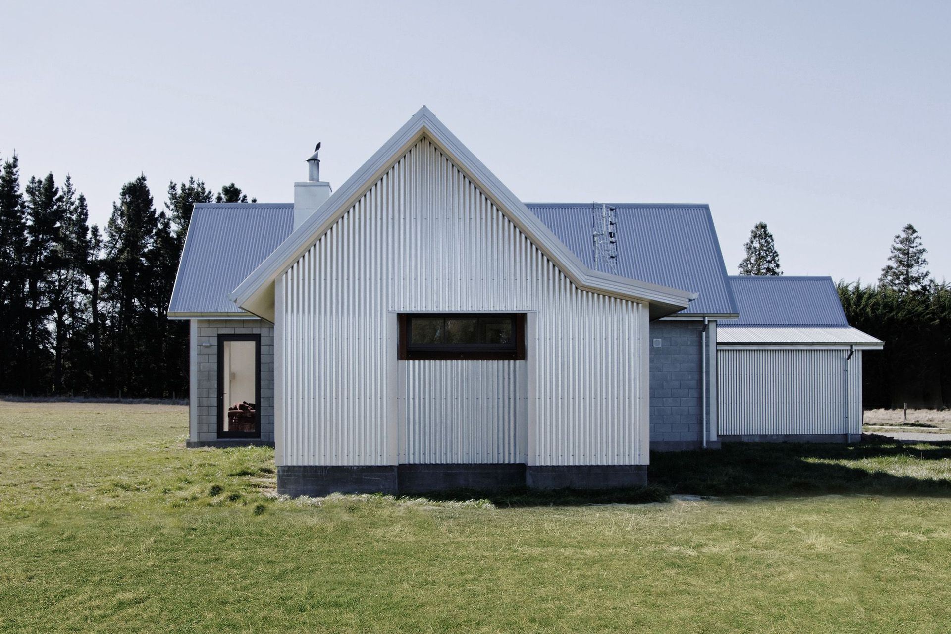 ArchiPro Project Summary - A striking rural retreat in Loburn, featuring classic tin and concrete block cladding, reminiscent of New Zealand's backcountry heritage. Winner of the House of the Year Gold Reserve Award and Lifestyle Living Award.