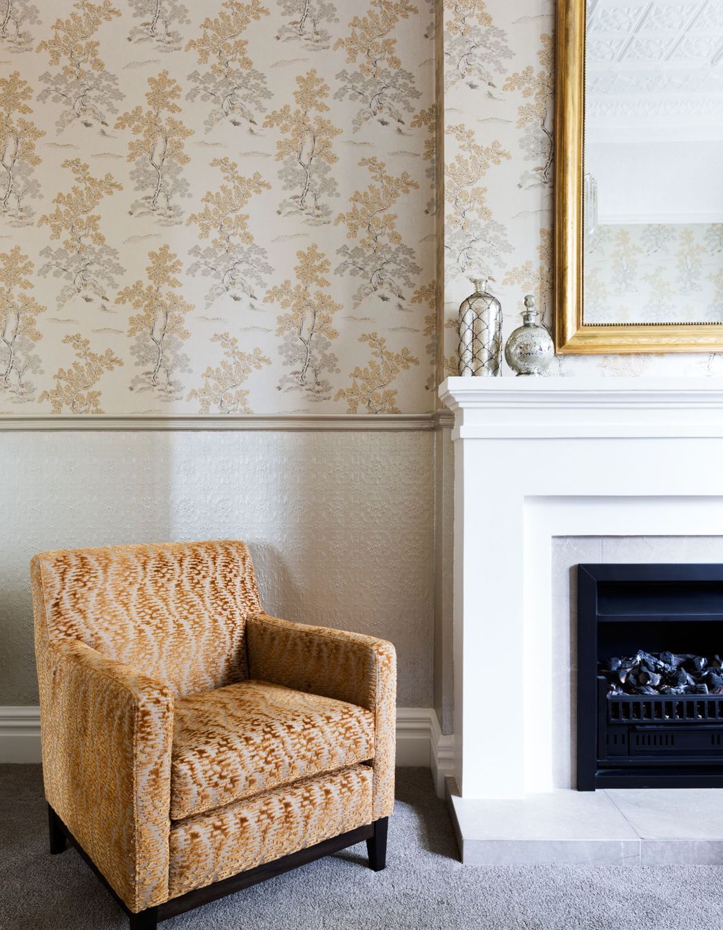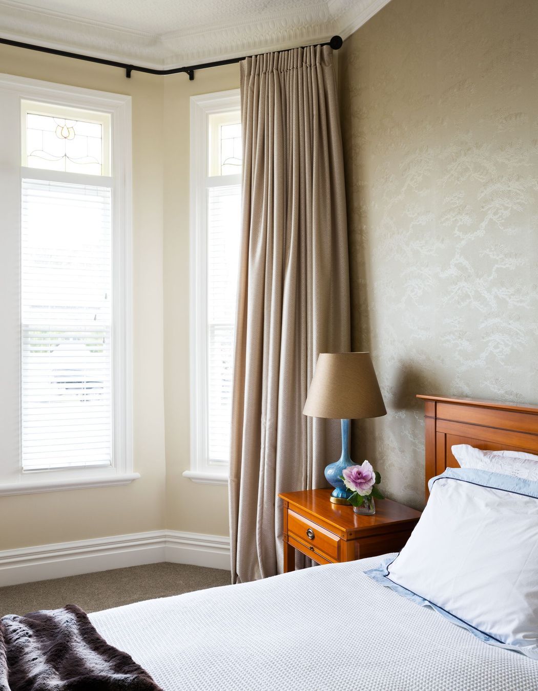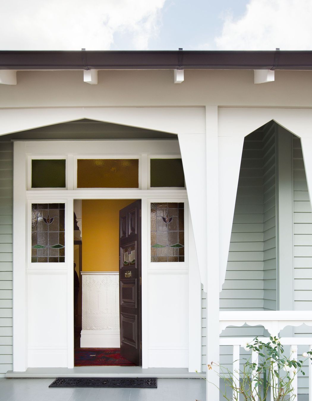 ArchiPro Project Summary - A finalist in the 2014 NZ House & Garden Room of the Year award, this villa features a warm entry hall, ornate ceilings, luxurious living room design, and a harmonious blend of textures and colors throughout, including a soft green exterior and updated gas fireplace.
