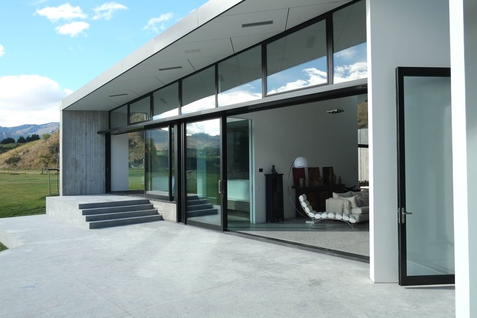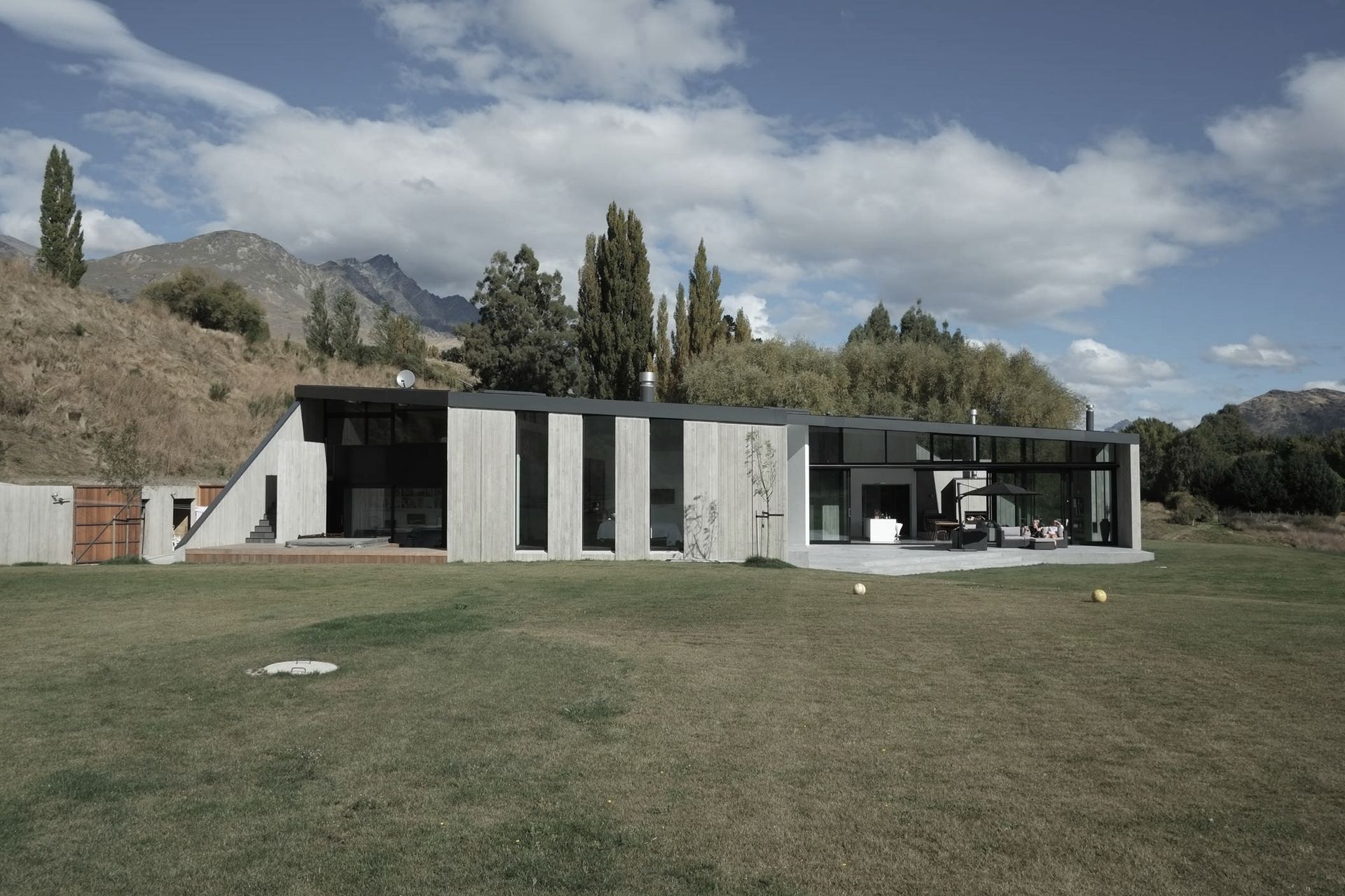 ArchiPro Project Summary - Two-storey precast concrete and steel dwelling designed by Thom Craig Architects, offering stunning views of the Shotover River near Queenstown.