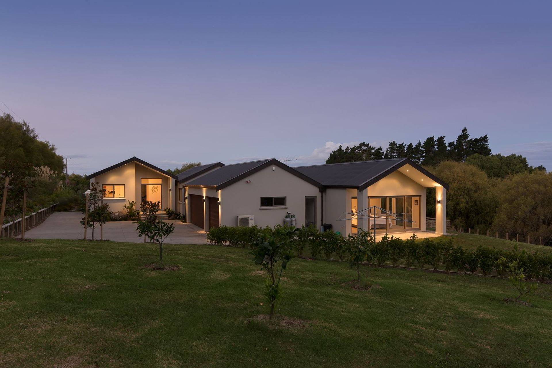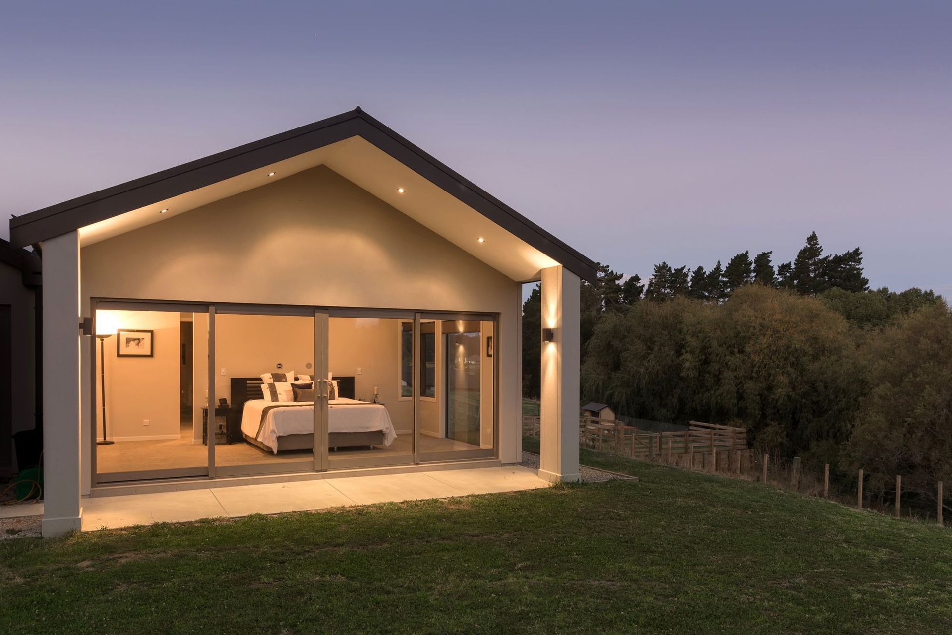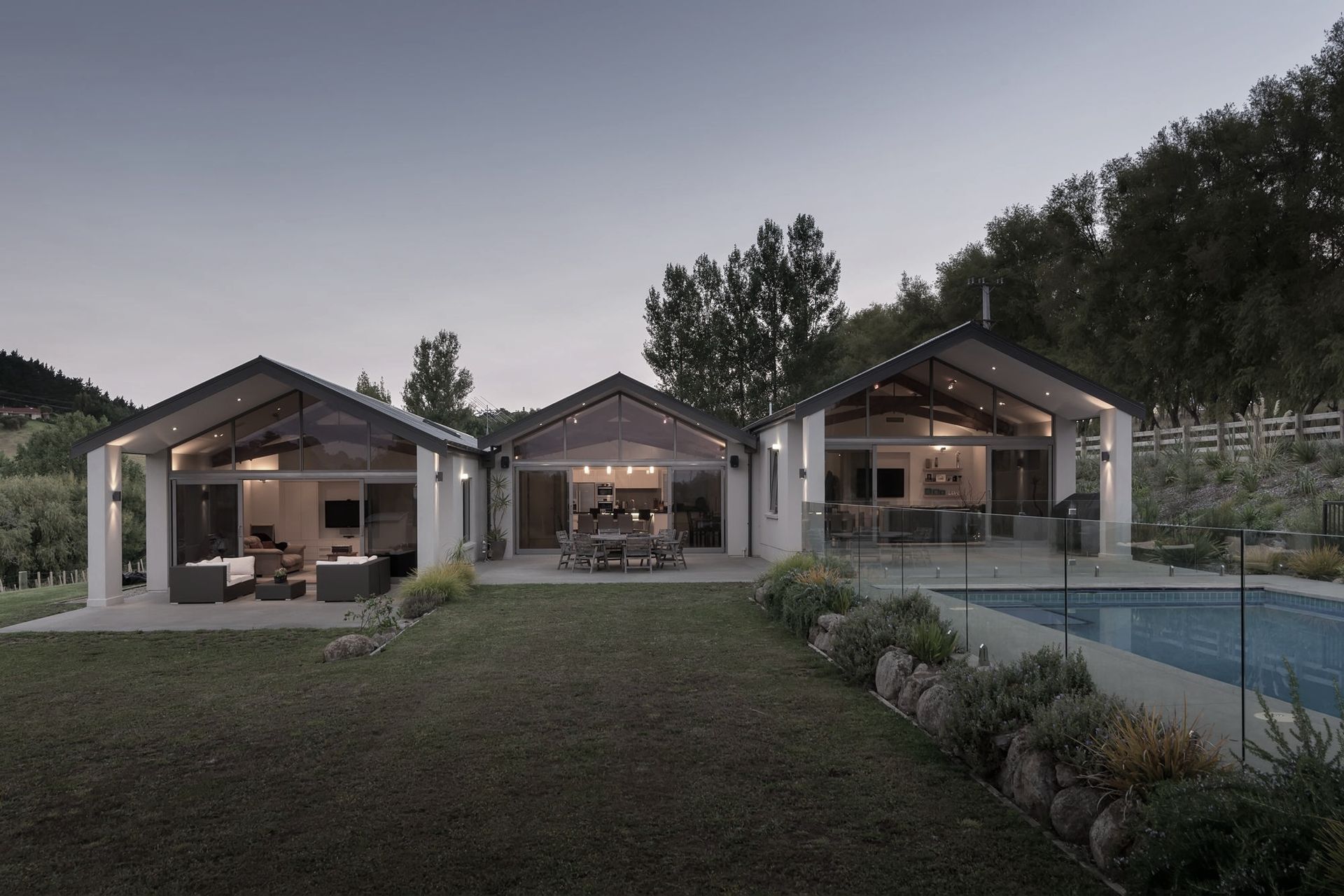 ArchiPro Project Summary - A thoughtfully designed residence harmonizing with its rural valley setting, featuring a shed-like structure with exposed timber trusses and seamless indoor-outdoor living spaces.