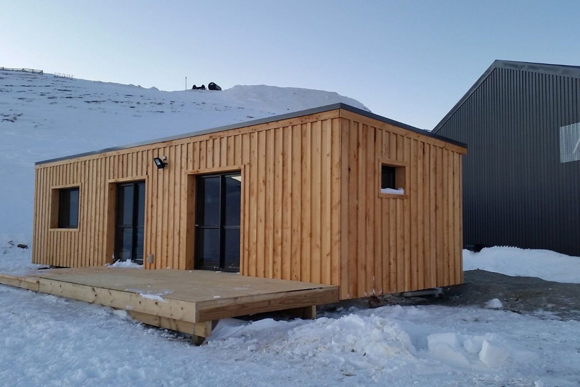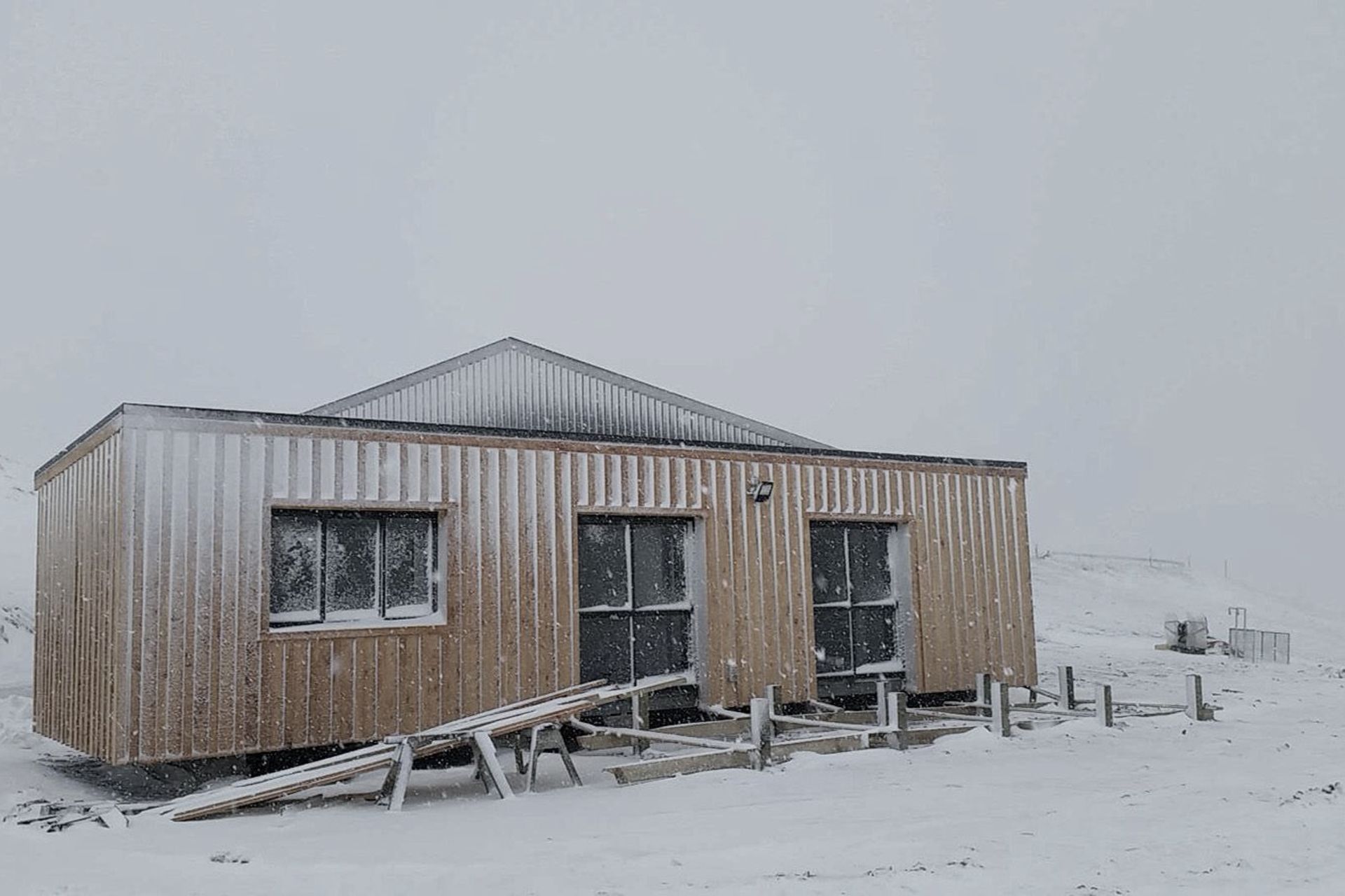 ArchiPro Project Summary - A self-sufficient shed and office designed for extreme weather conditions, featuring advanced LED lighting and powered by a diesel generator, completed under challenging conditions from sunshine to blizzards.