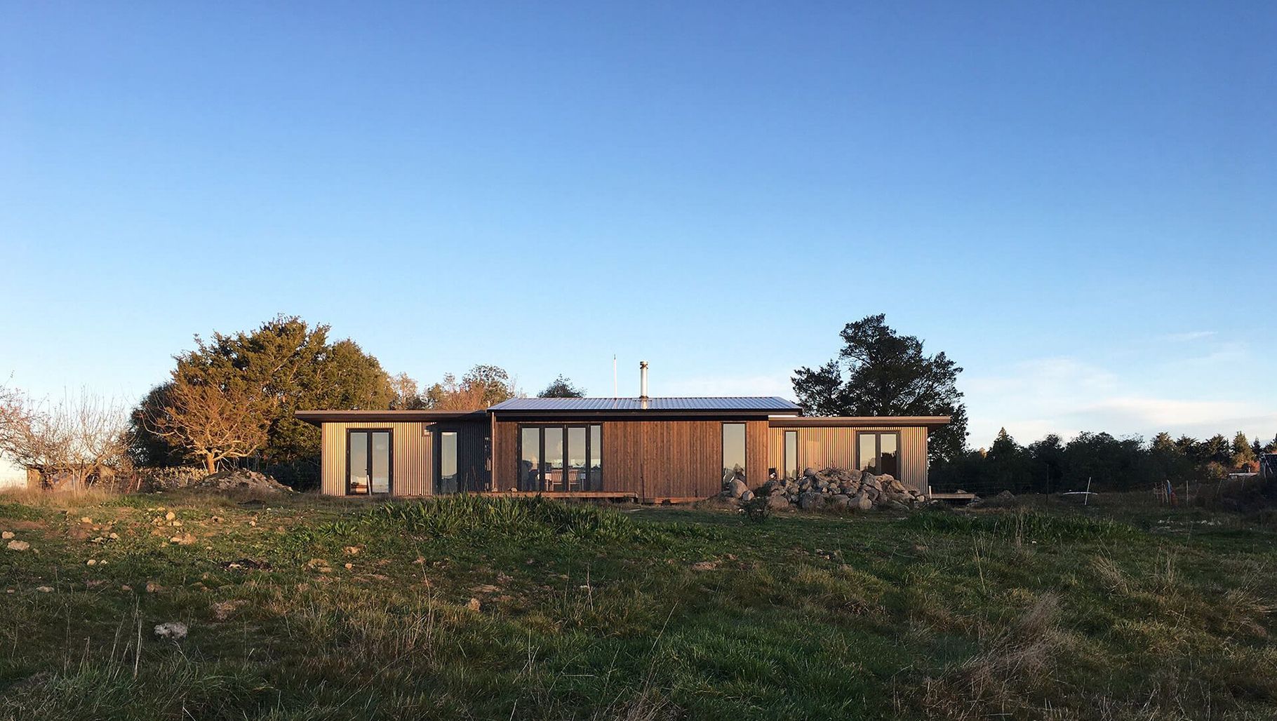 ArchiPro Project Summary - A modern, self-sustaining home in Geraldine, New Zealand, featuring sustainable materials, stunning views of the Tarahaoa/Mt Peel Range, and a design that harmonizes with its natural surroundings.