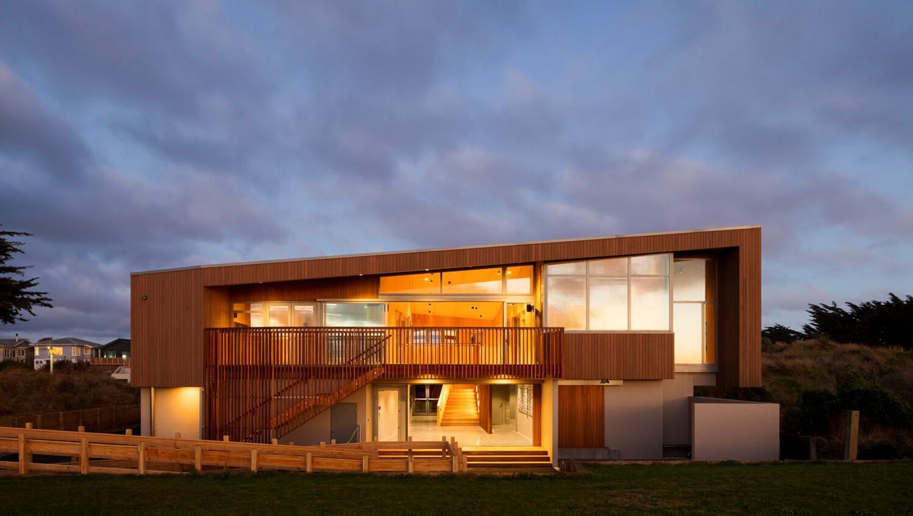 ArchiPro Project Summary - Two-storey redevelopment of the South Brighton Surf Lifesaving Club, featuring durable materials and a design that harmonizes with the coastal environment, serving as a vital community asset since its opening in 2021.