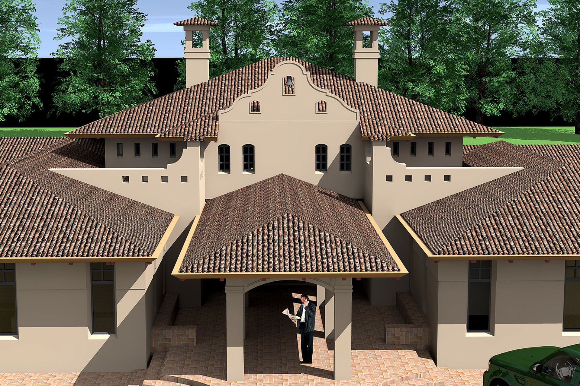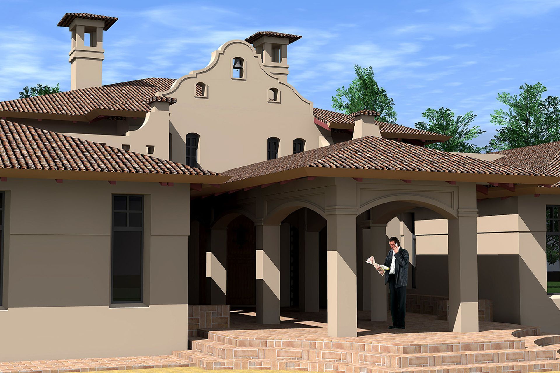 ArchiPro Project Summary - A contemporary interpretation of Spanish Mission style, featuring a traditional floor plan with solid masonry walls for optimal thermal performance and sound insulation.