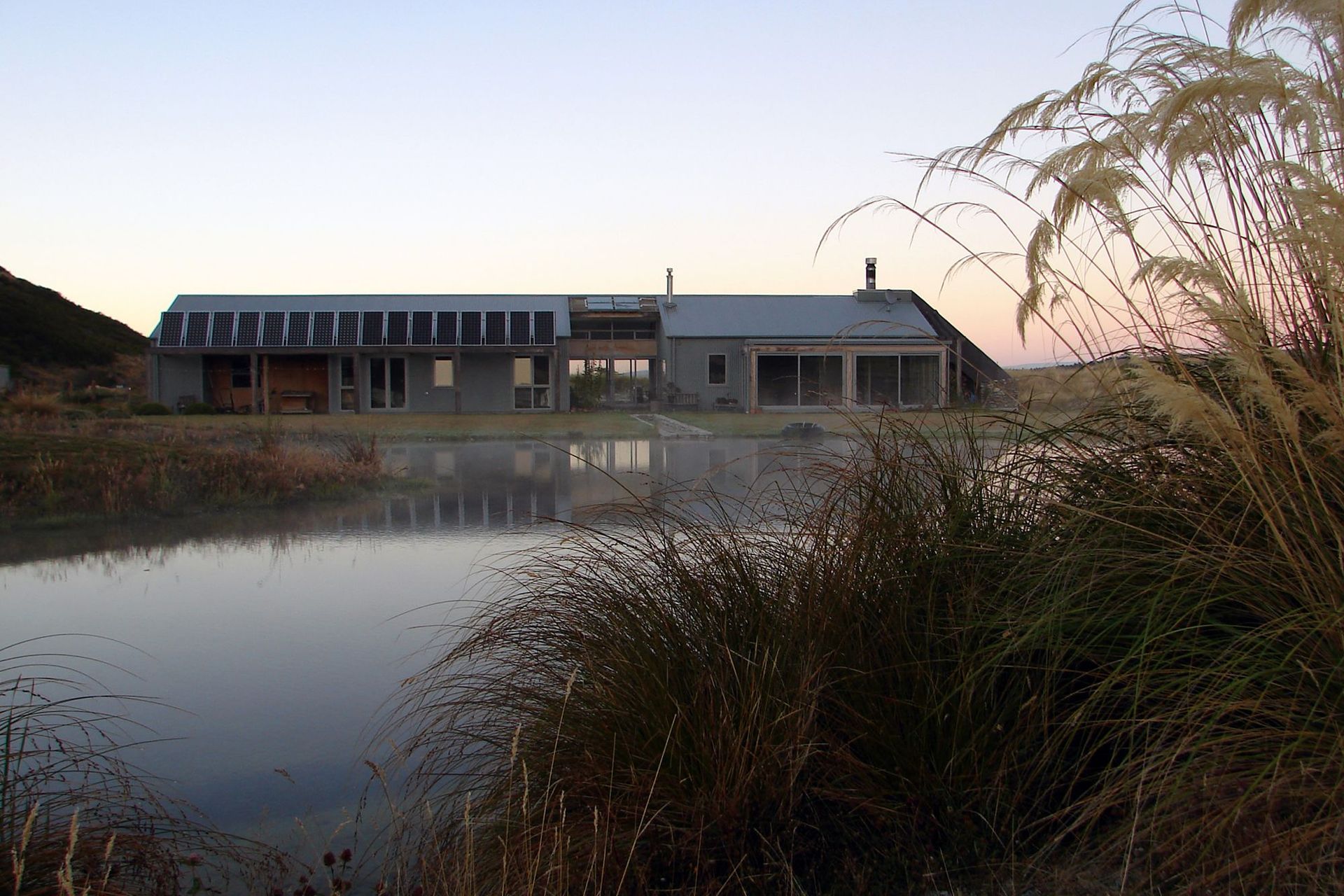 ArchiPro Project Summary - Dunstan Halt: A sustainable, self-sufficient home harmoniously integrated into the Central Otago landscape, featuring large windows for panoramic views, passive solar design, and natural cooling solutions.