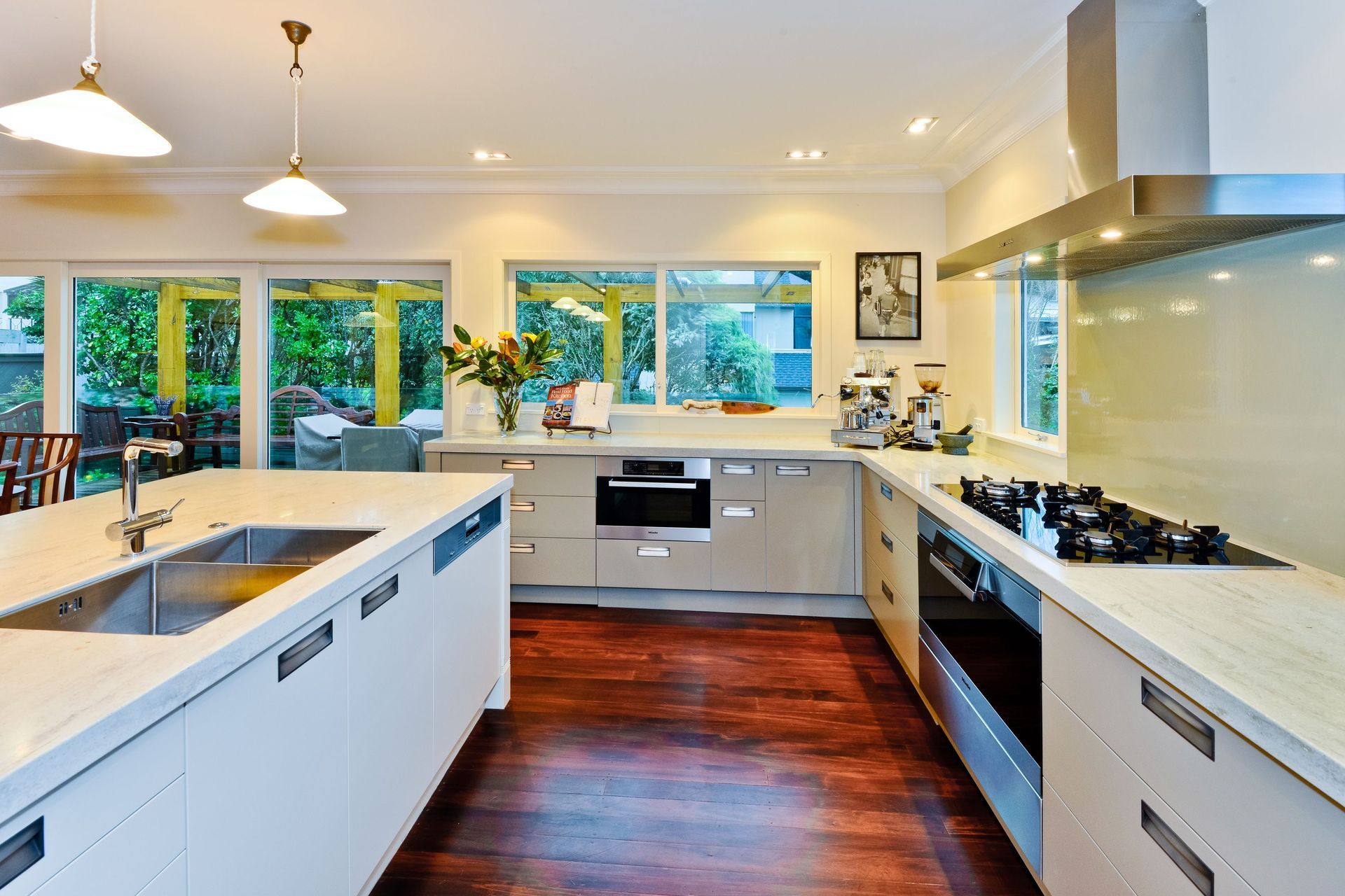 ArchiPro Project Summary - The St Heliers Home project features modern interior design with elegant wood flooring and carefully selected furniture, creating a warm and inviting dining room.