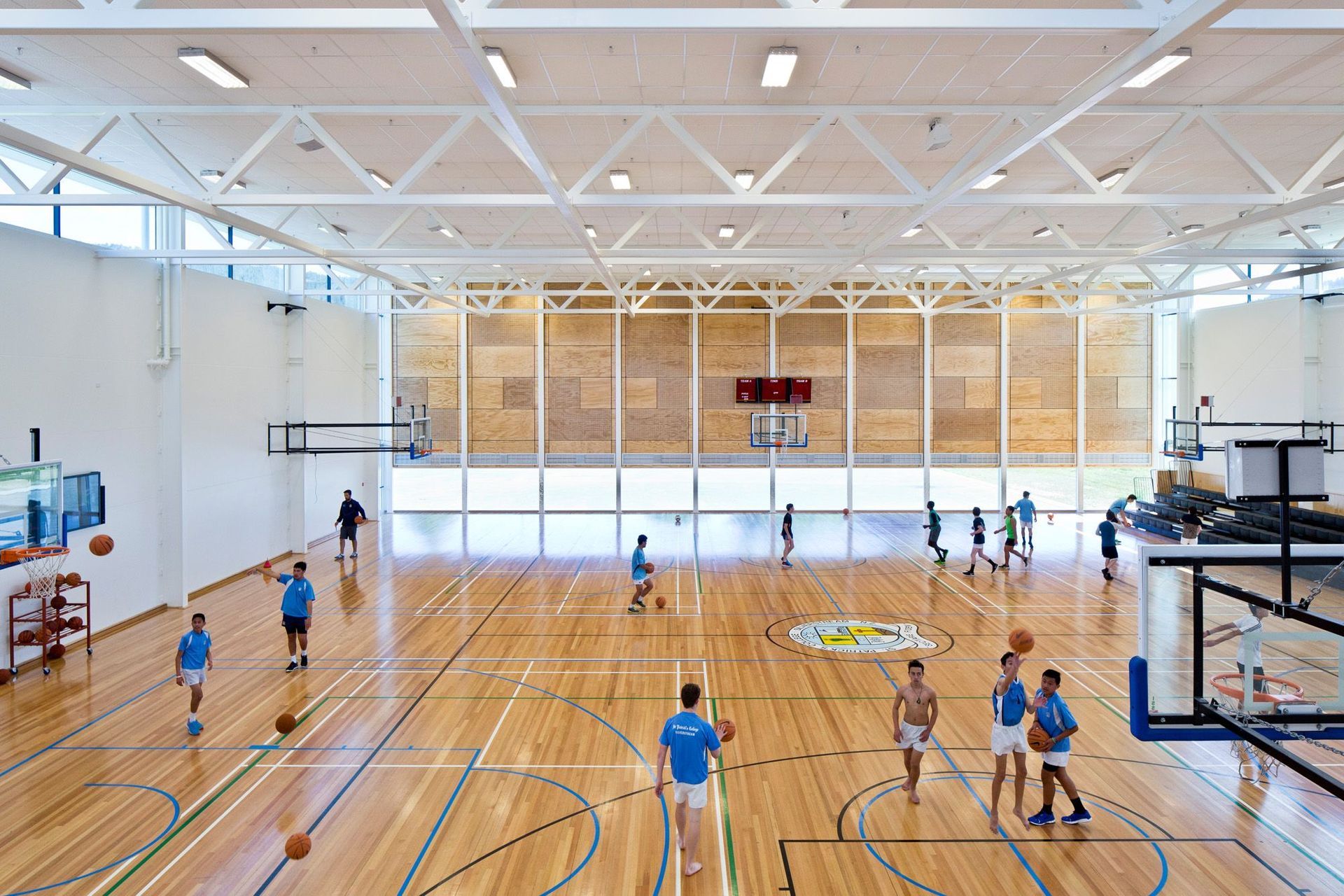 ArchiPro Project Summary - St Patrick's College Silverstream Sports Hub: A modern multipurpose facility designed for school and community use, featuring a light-filled layout that enhances connectivity and security, while harmonizing with the traditional campus aesthetic.