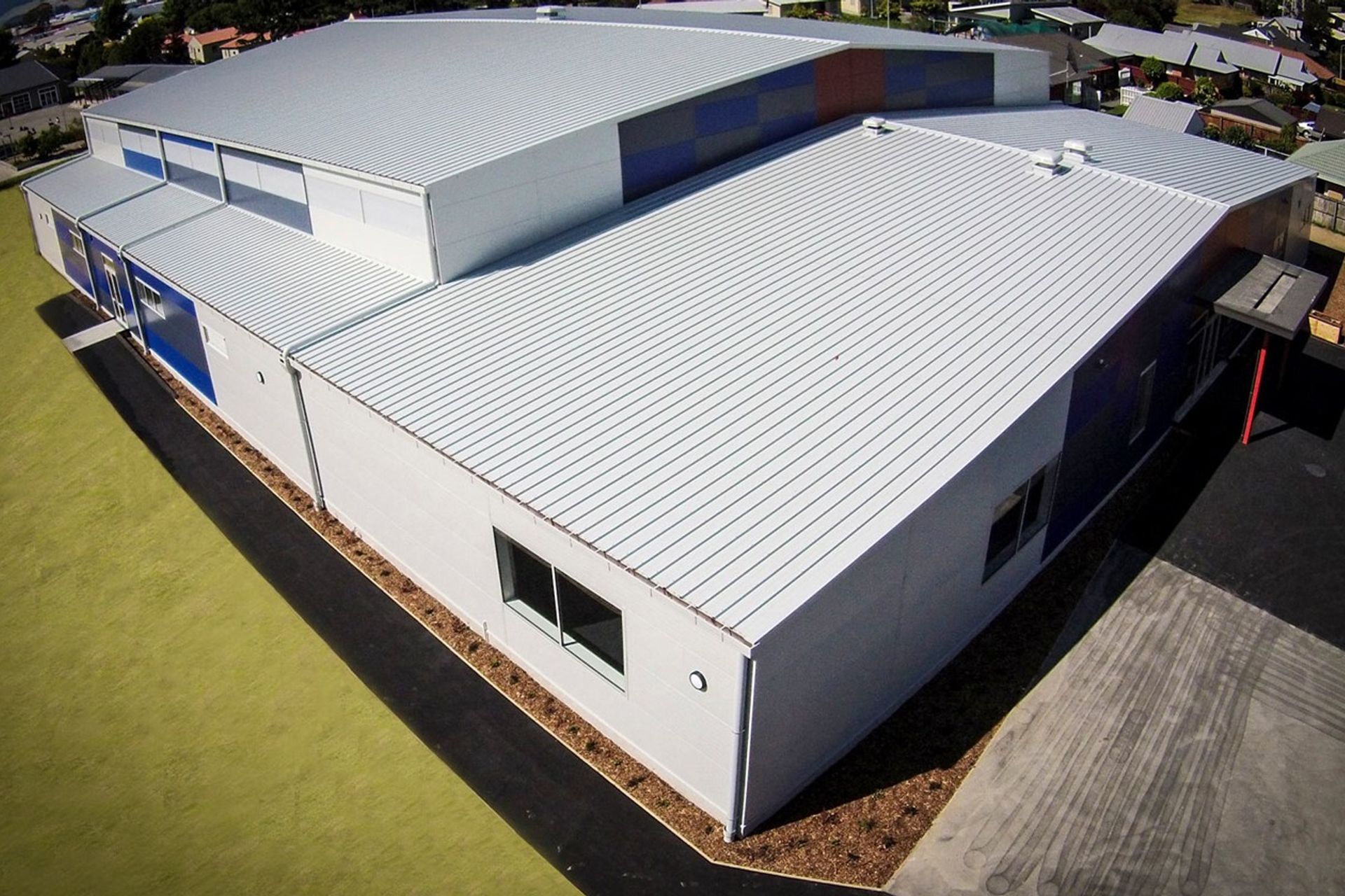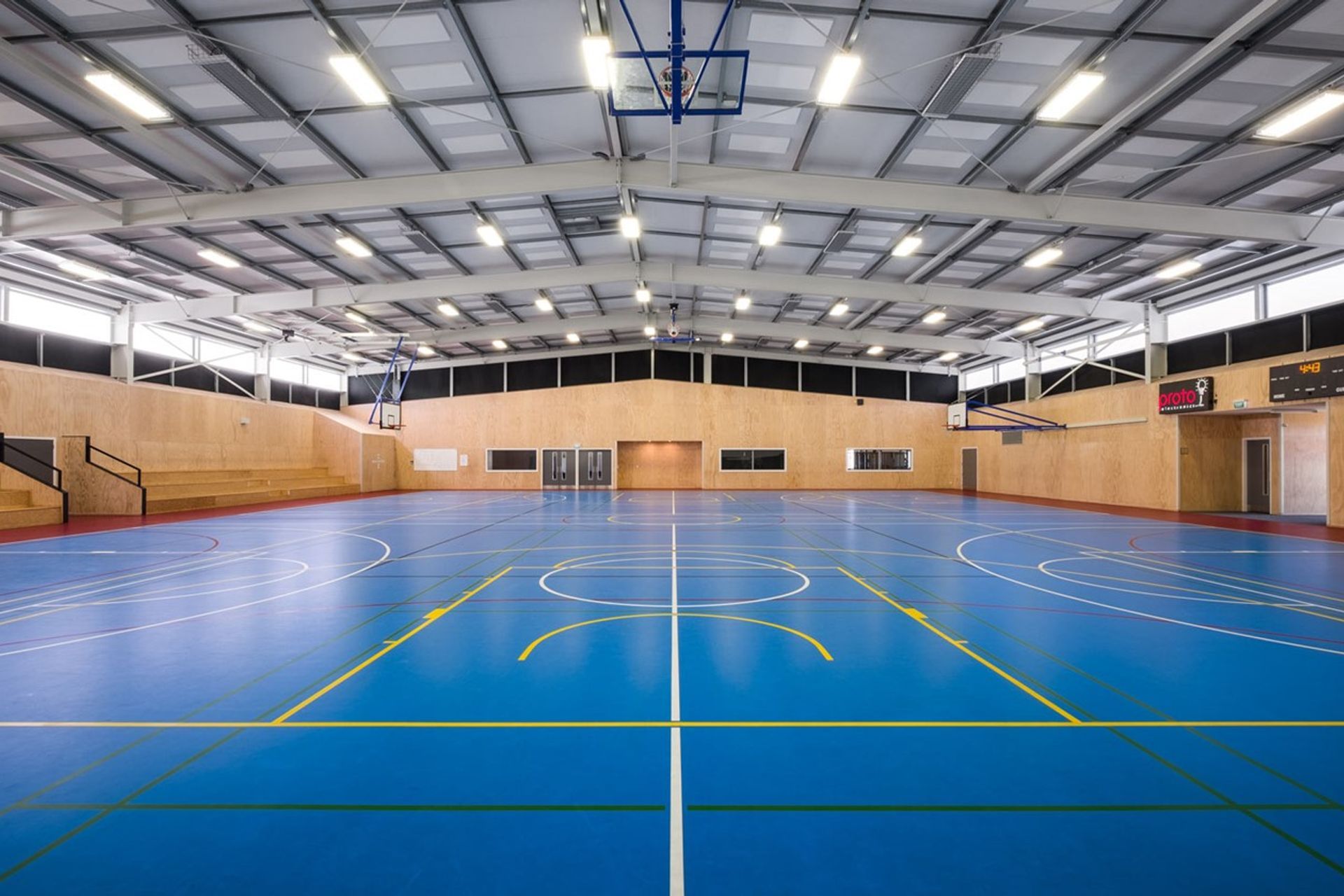 ArchiPro Project Summary - New 2,124m² sports hall at St Thomas College in Christchurch featuring multi-sport facilities, energy-efficient design, and future expansion potential.