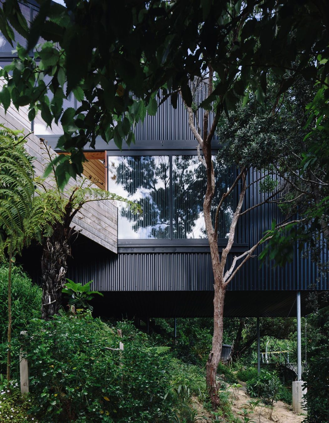 ArchiPro Project Summary - Unique 135 sqm residence in Wellington featuring a folded boomerang shape, intimate living spaces, and rich textures from recycled materials, designed and partially completed by its architect-owner residents.