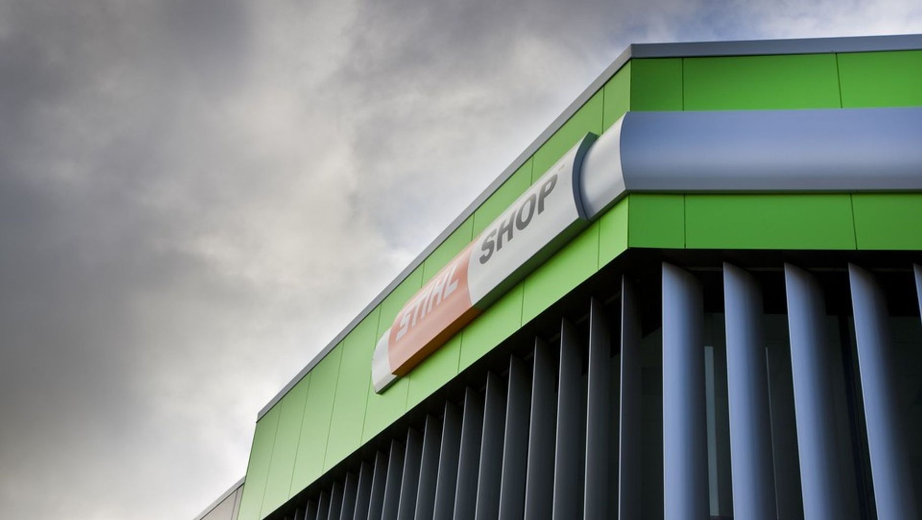 ArchiPro Project Summary - A flagship store for STIHL SHOP, featuring a functional and organized workspace that showcases products while embodying the brand's values of strength, longevity, honesty, and reliability through the use of precast panels, steel, and glass.