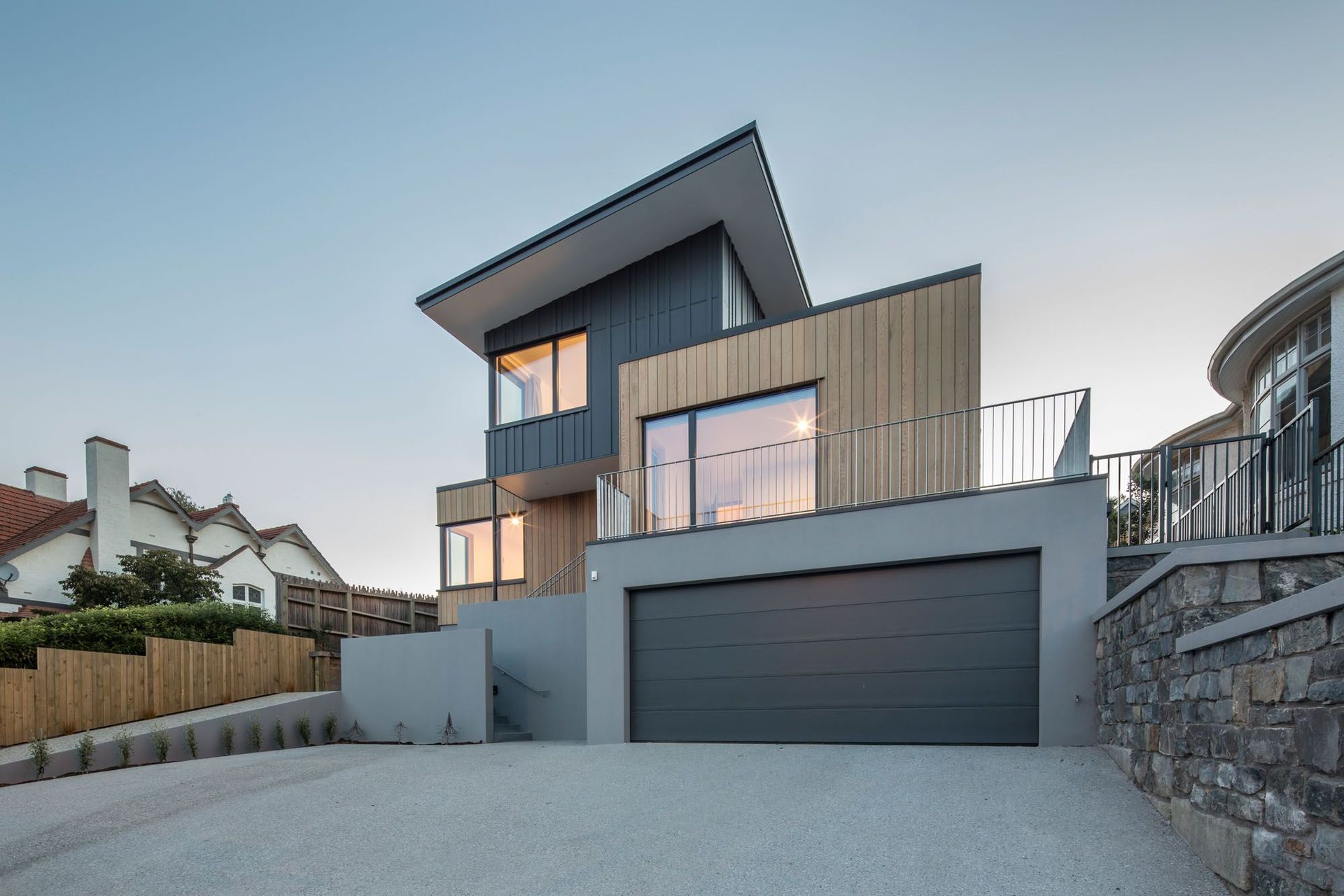 ArchiPro Project Summary - Stack House: A certified passive house completed in 2017, featuring superior insulation, smart heat recovery ventilation, and triple-glazed windows, offering exceptional interior comfort and a striking presence on Stuart Street.