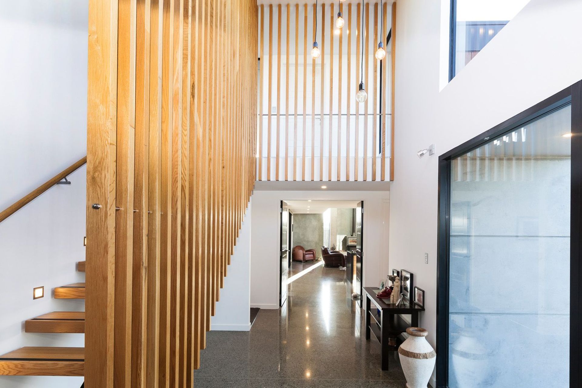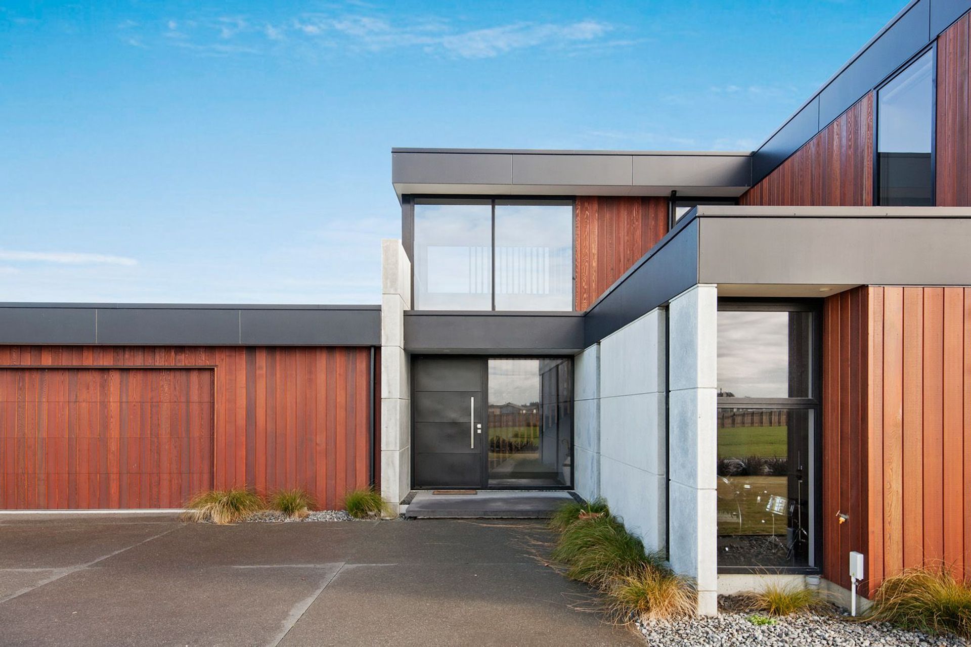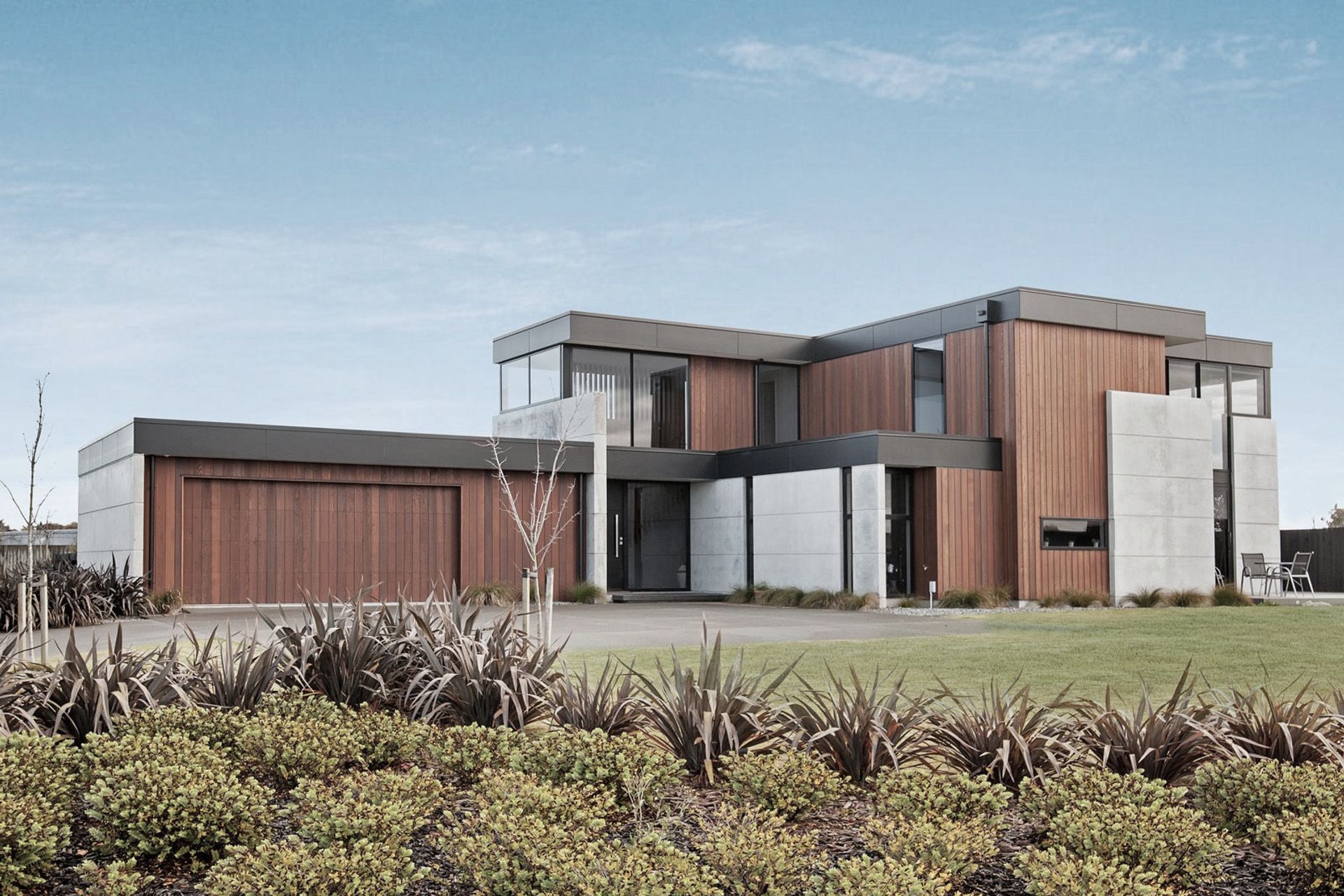 ArchiPro Project Summary - Contemporary two-story home featuring a blend of precast concrete and timber cladding, designed for optimal spatial flow and views of mature gardens.