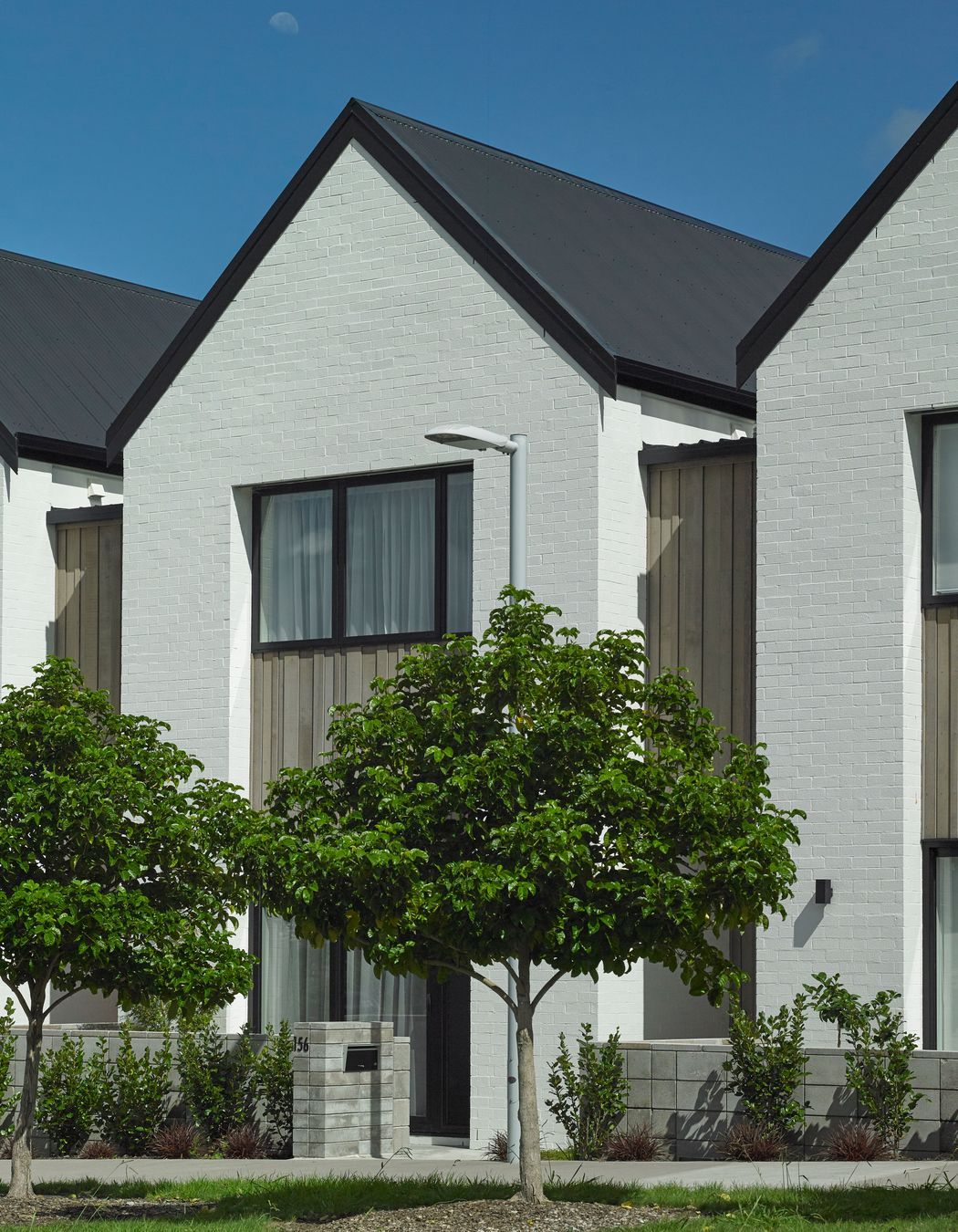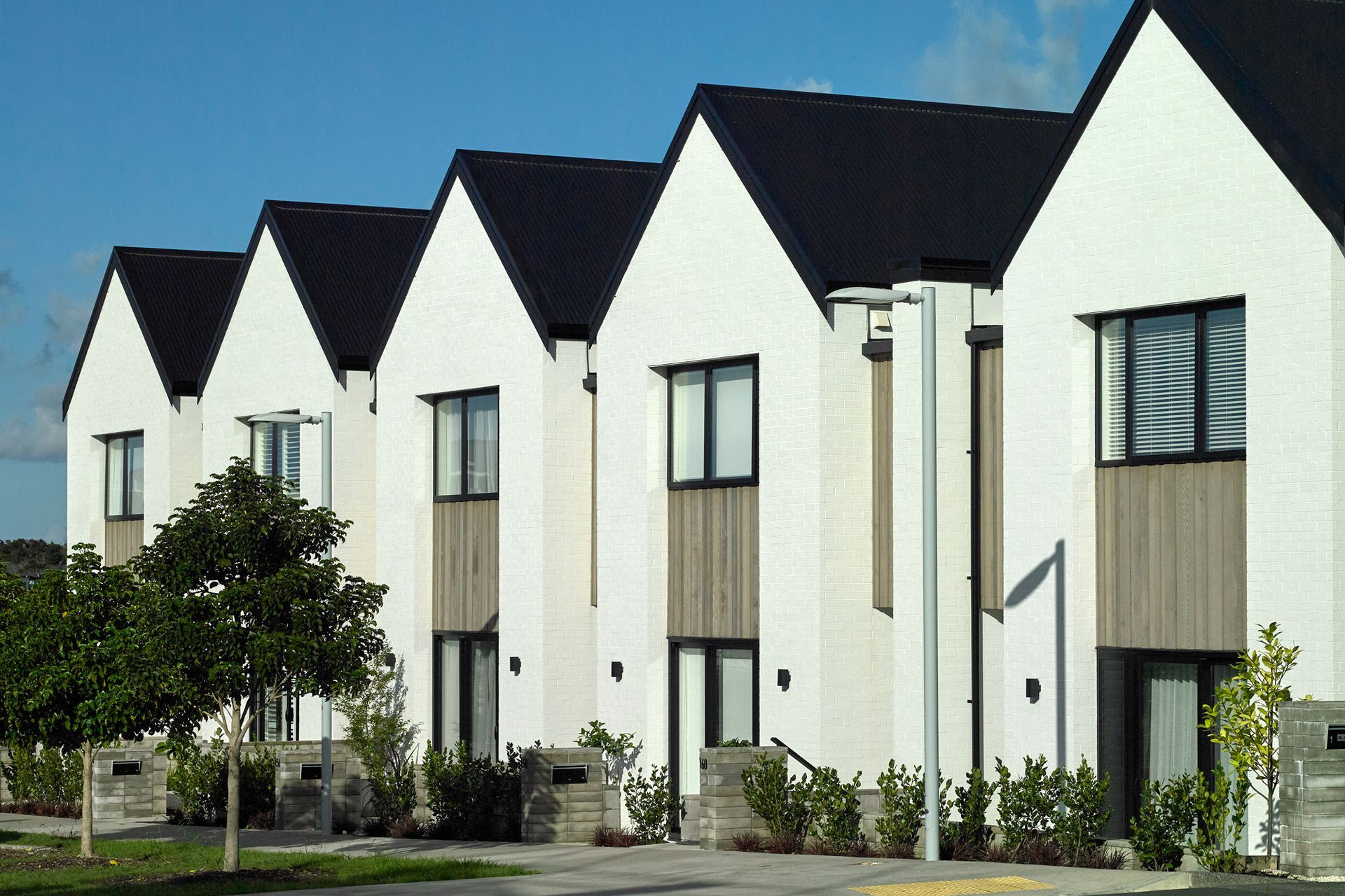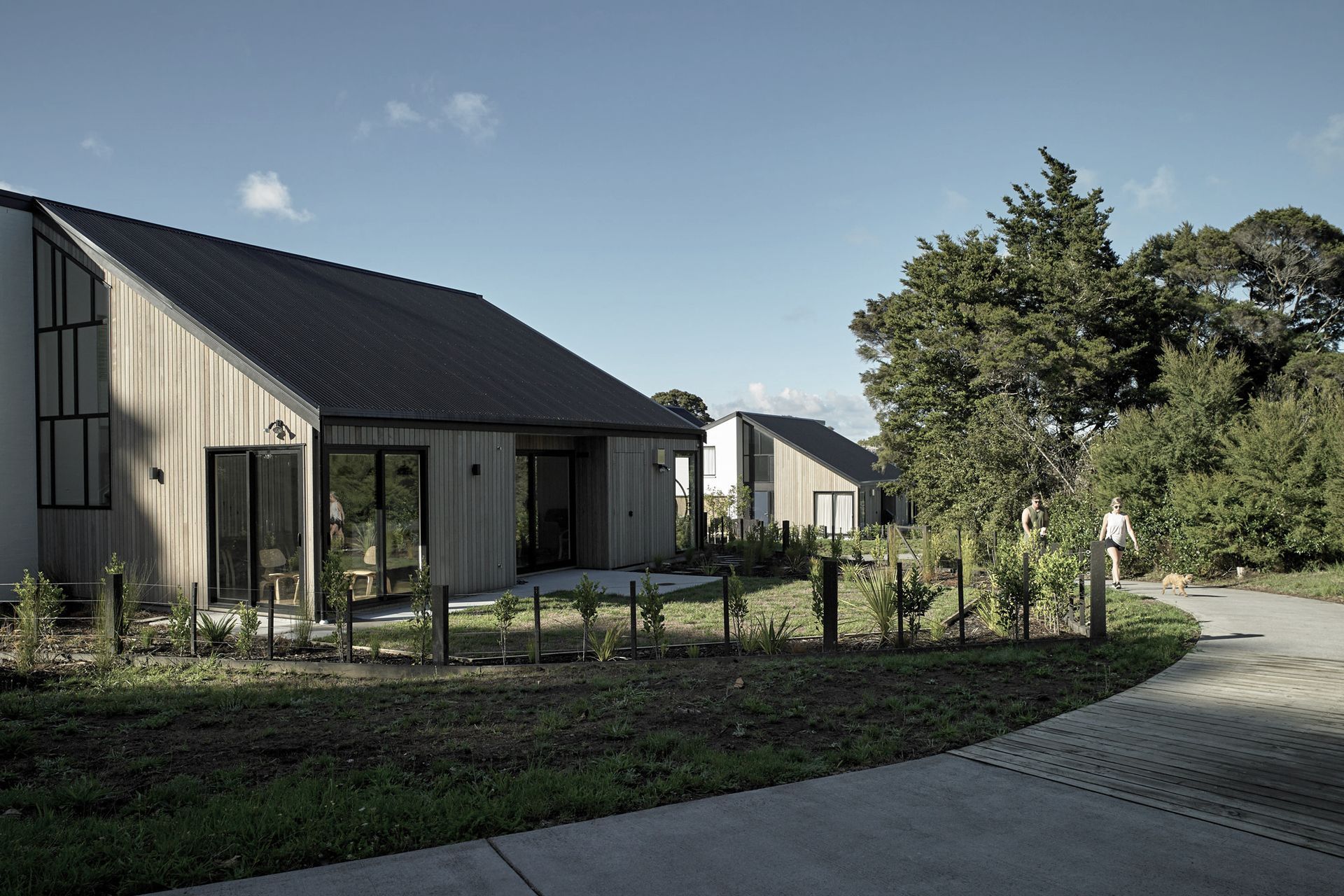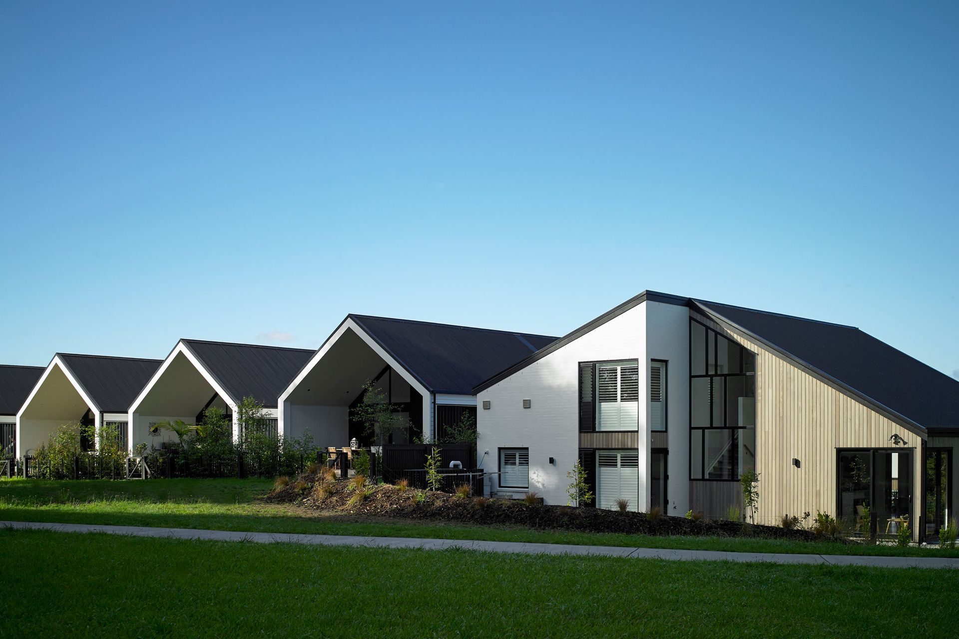 ArchiPro Project Summary - Contemporary coastal development featuring 14 elegantly designed homes, inspired by boathouse typologies, with a focus on low maintenance materials and thoughtful architecture, creating a unique and cohesive new neighborhood at Hobsonville Point.