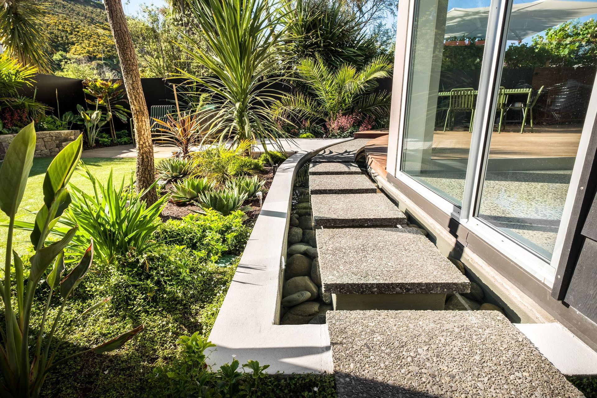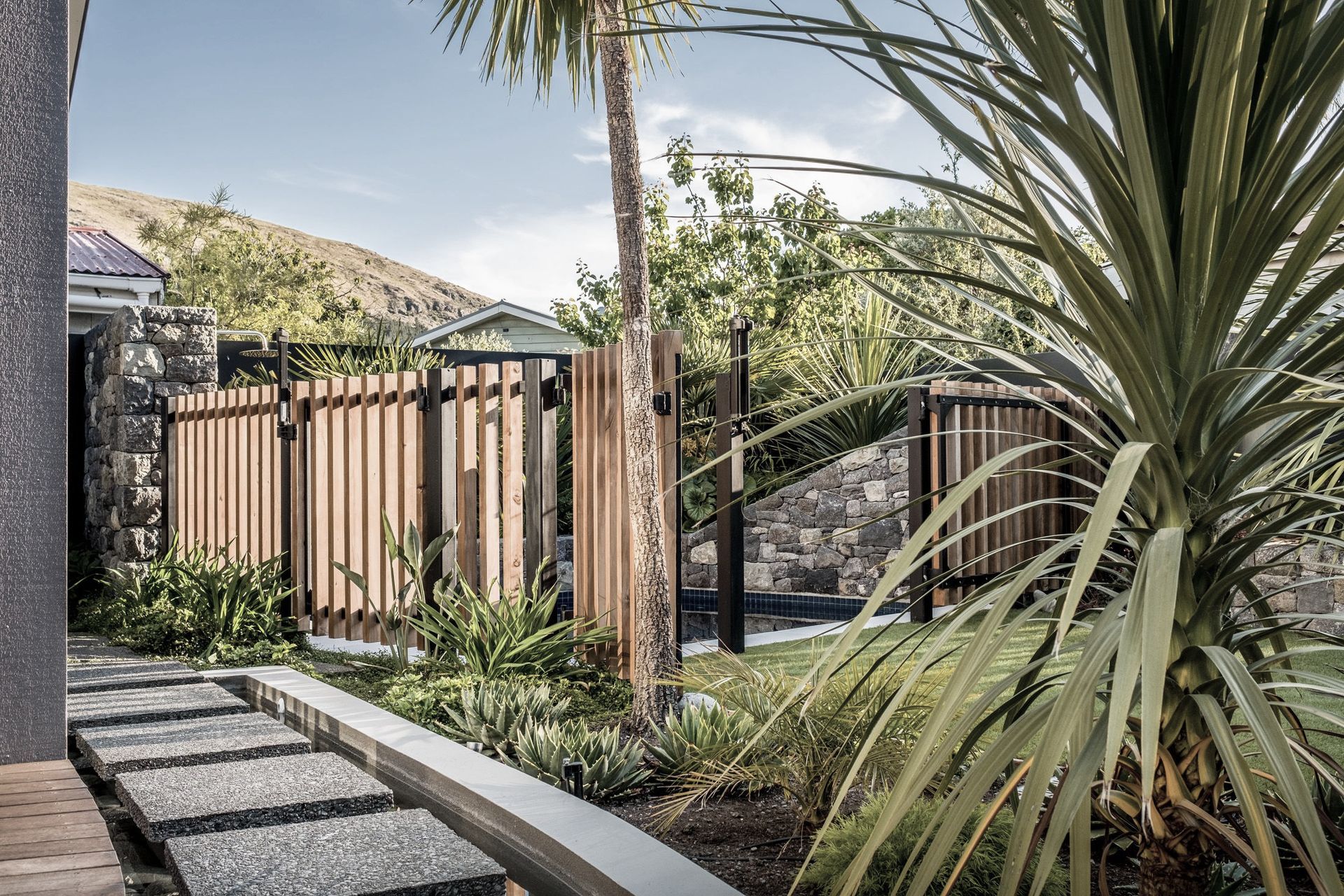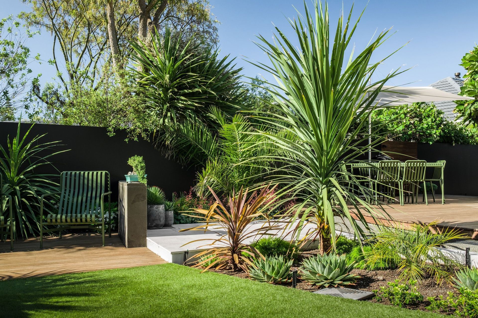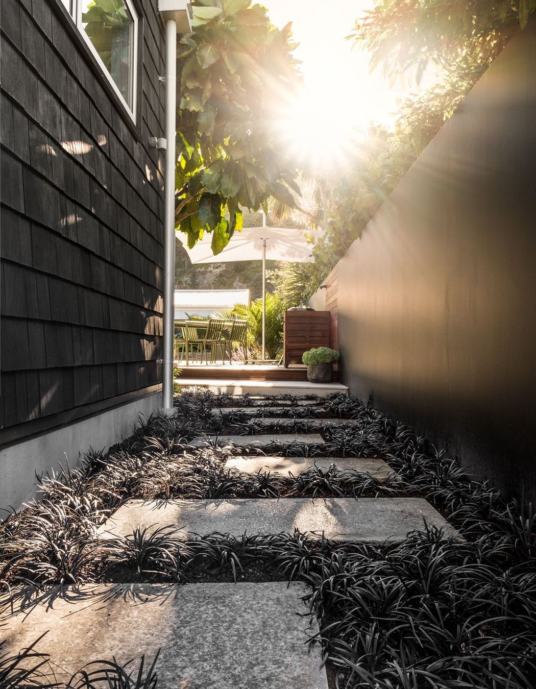 ArchiPro Project Summary - A revitalized outdoor space featuring semi-tropical planting, family-friendly entertainment areas, and locally sourced materials, creating a harmonious coastal retreat.